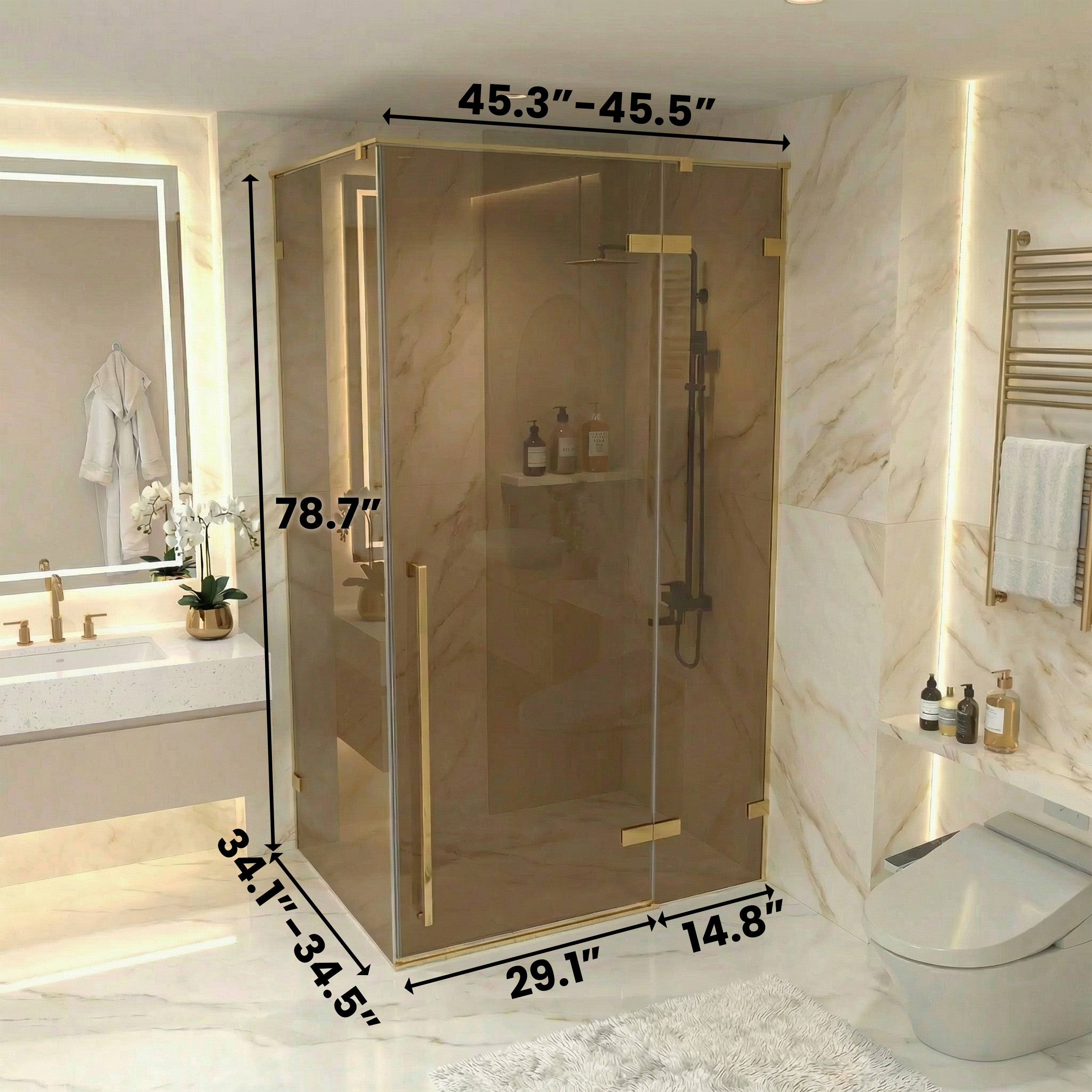 48" x 79" Reversible Fixed/Pivot Shower door Brushed Gold with Brown Tinted Glass and 36" x 79" Side Shower Panel