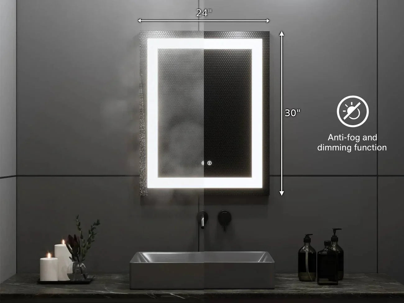 24" x 30" Professional LED Bathroom Mirror with Four-Sided Frost Lighting - Studio-Grade Anti-Fog Mirror with 5185 Lumens, 80+ CRI Color Accuracy, Touch Dimming Control & Advanced Light Guide Technology