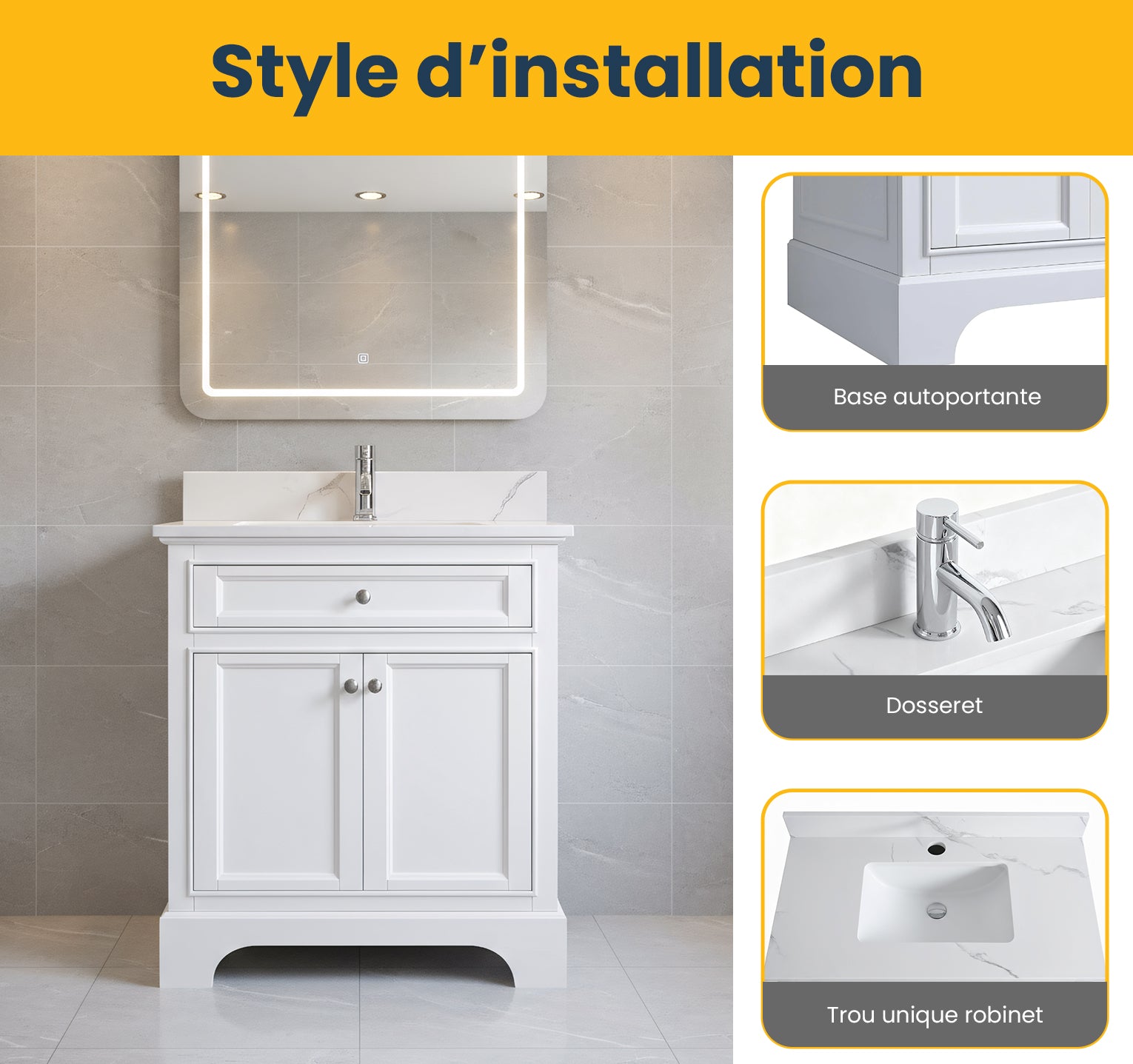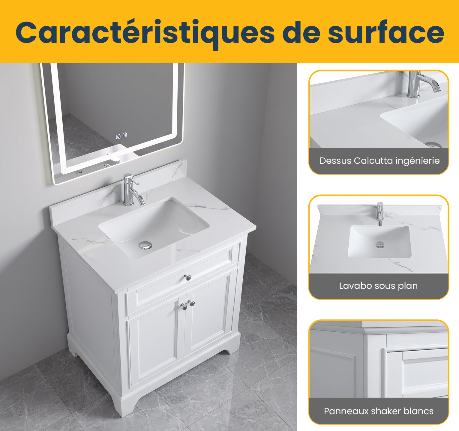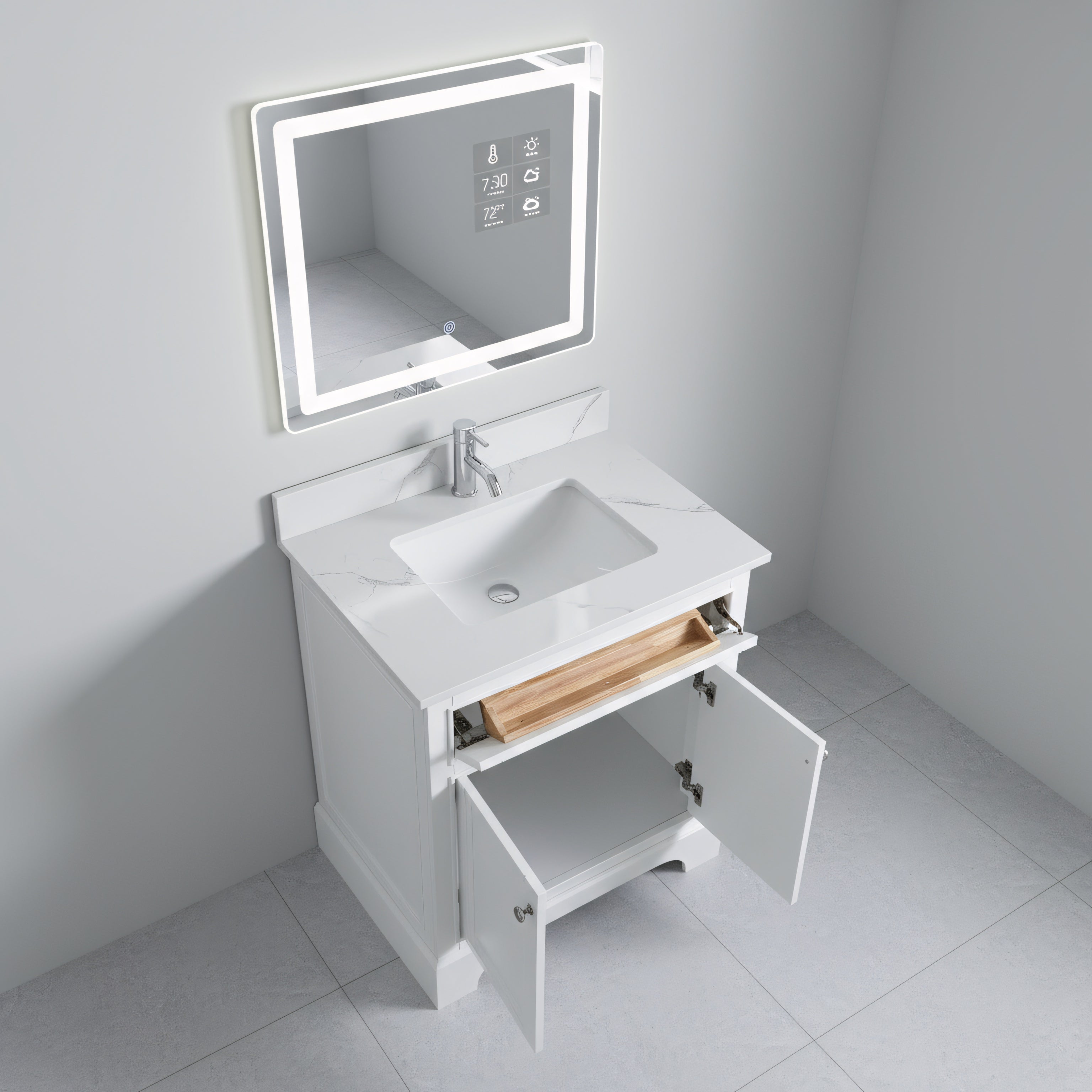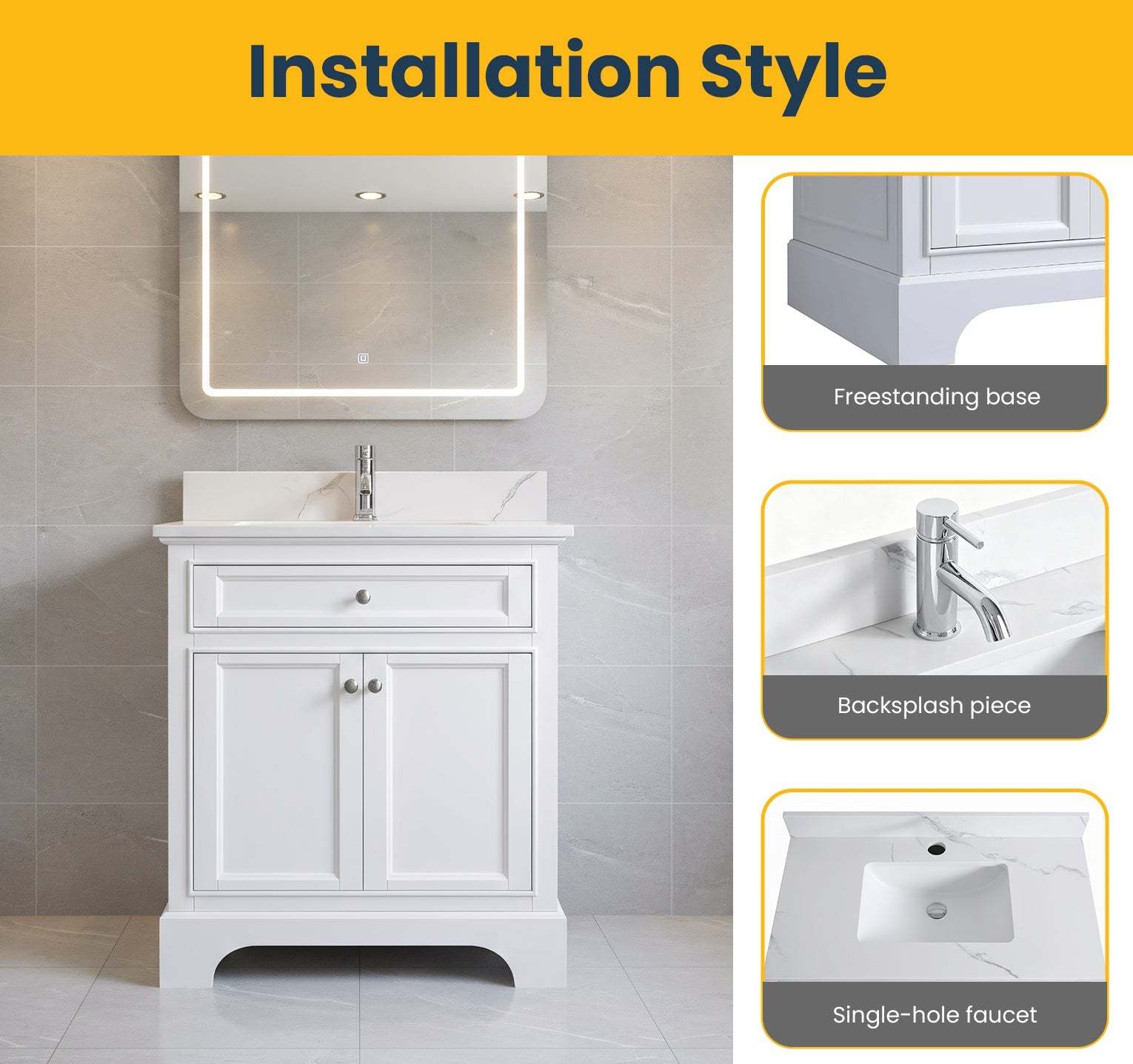 30" White Freestanding Bathroom Vanity with Engineered Calcutta Marble Countertop