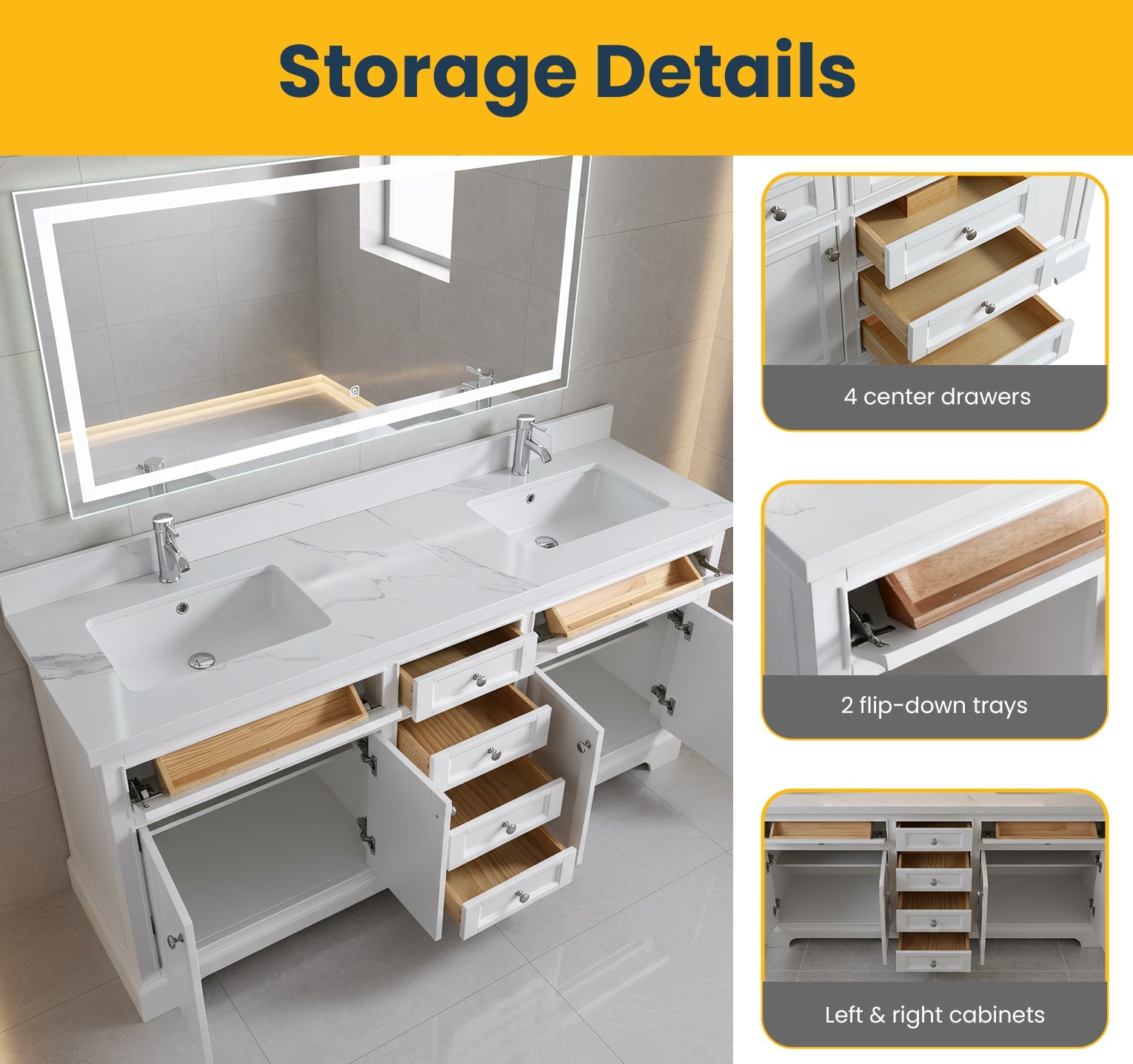 Spacious 72-inch freestanding vanity with double sinks, ideal for large bathrooms