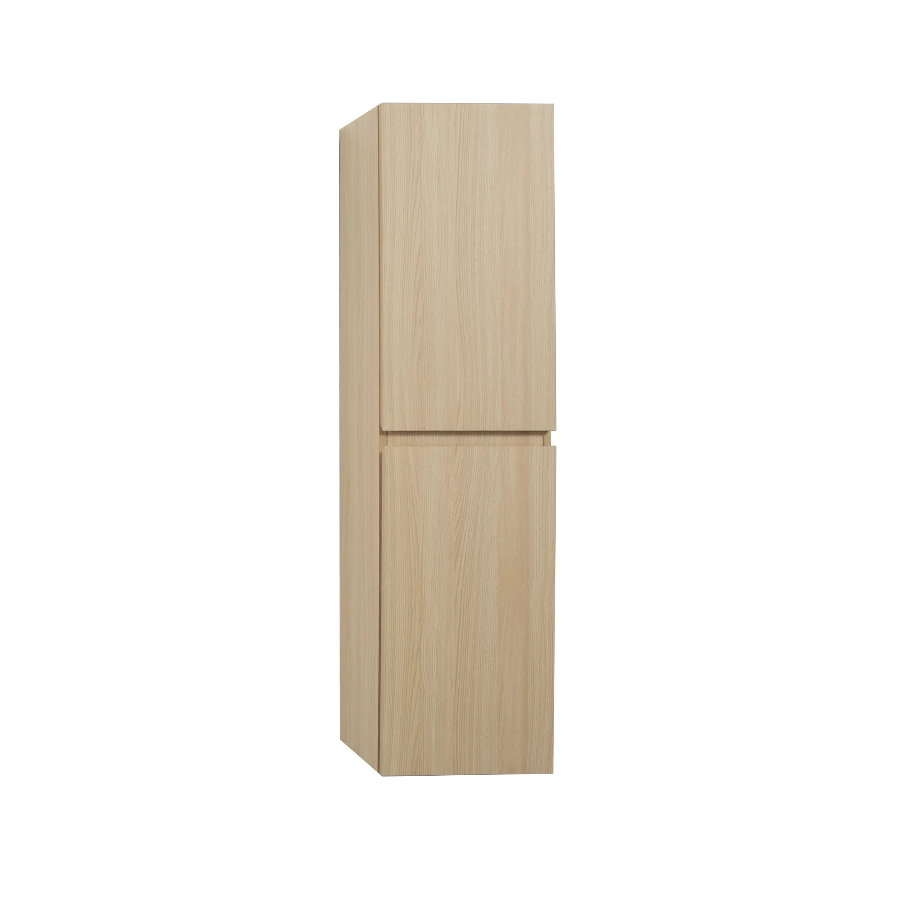 • Wall-mounted linen cabinet in natural wheat colour made of moisture-resistant PBC with MDF door fronts, ensuring durability in wet conditions