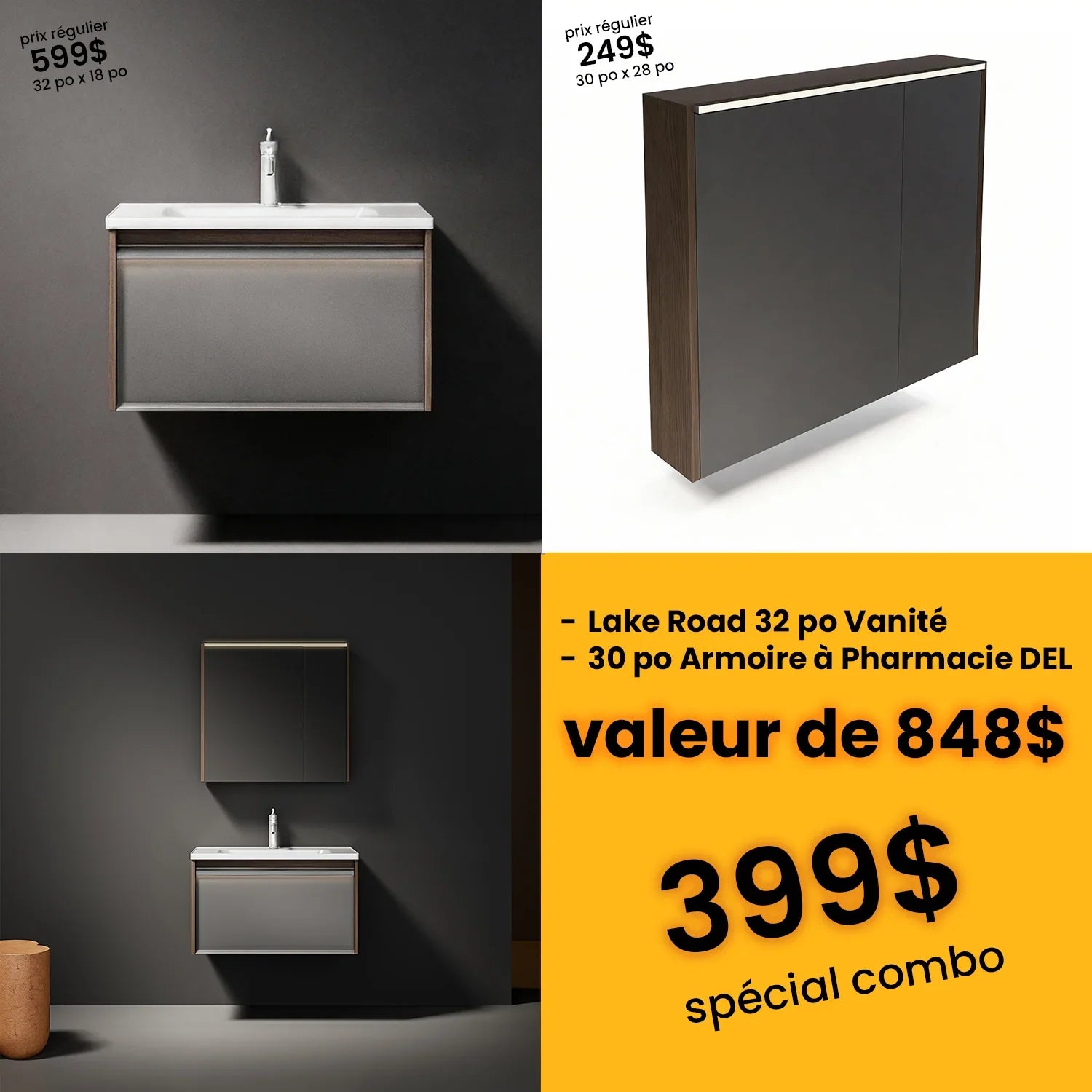 This 2-piece set delivers on both form and function — modern aesthetics, clever storage, and a space-saving design — all for just $399 + tax. It’s the smart choice for stylish bathroom updates on a budget.