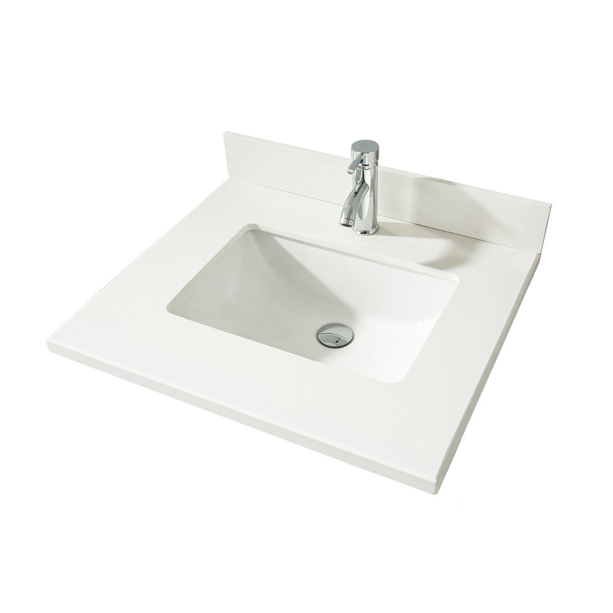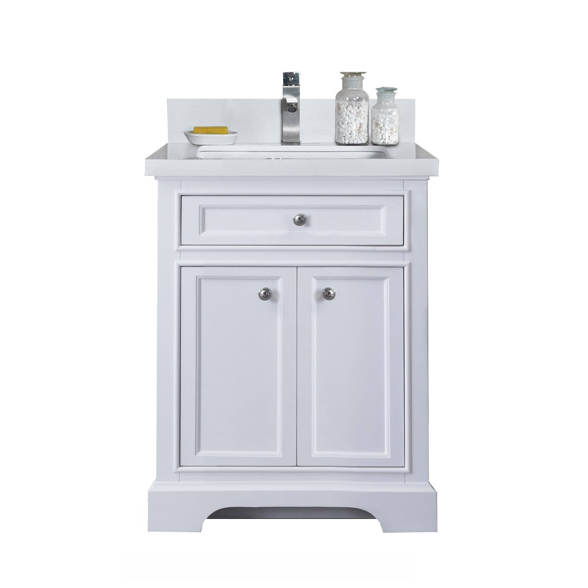 24" White Freestanding Bathroom Vanity w/ Snow White Quartz Countertop Milan