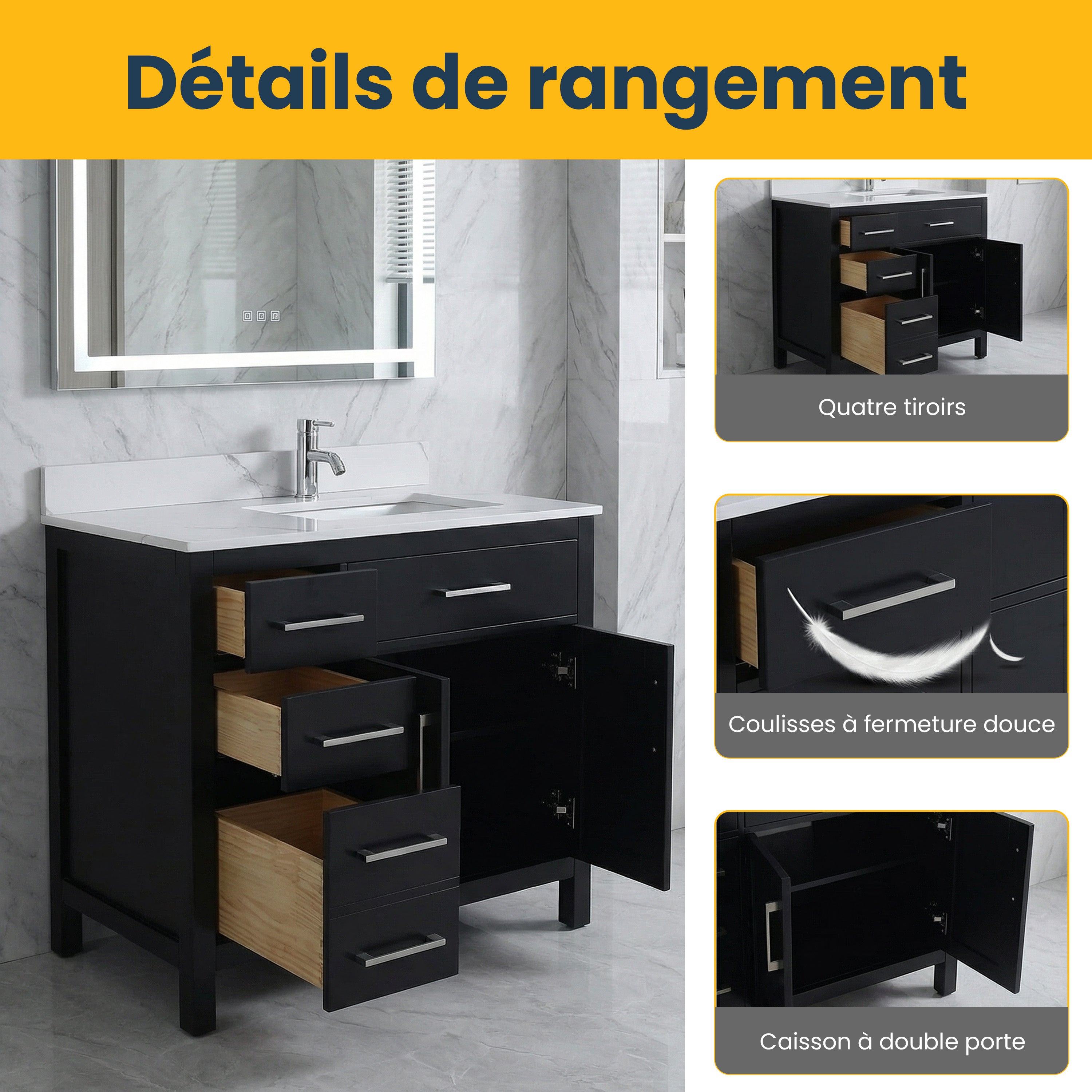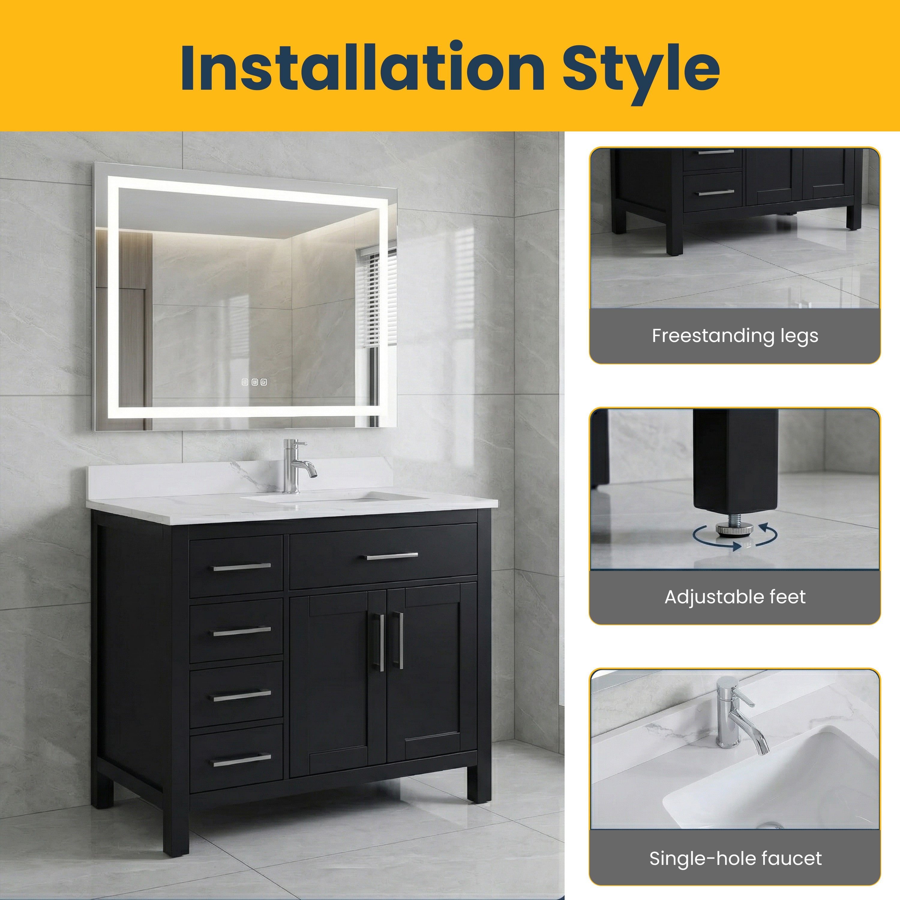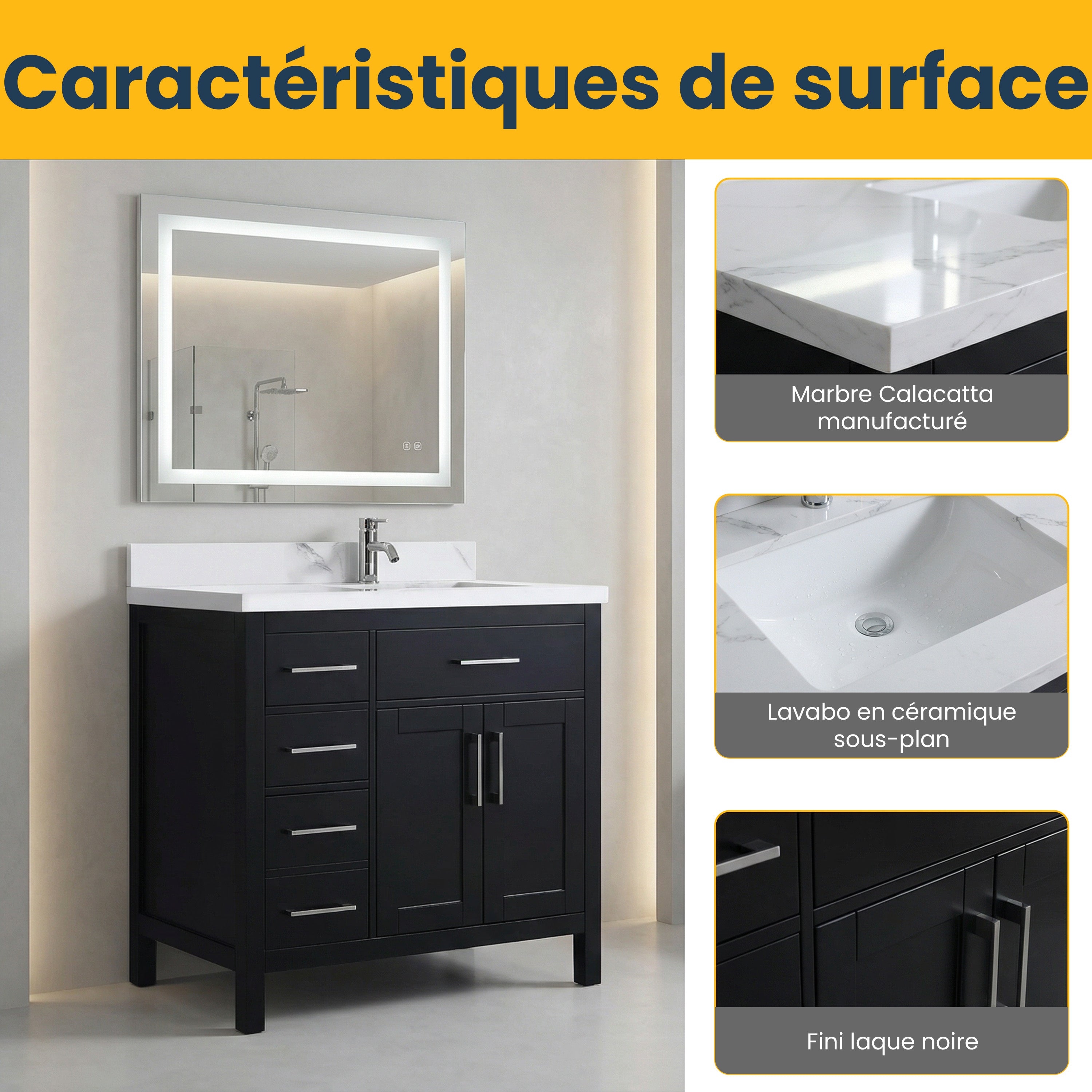 36" Black Freestanding Single Sink Bathroom Vanity with Engineered Calcutta Marble Countertop