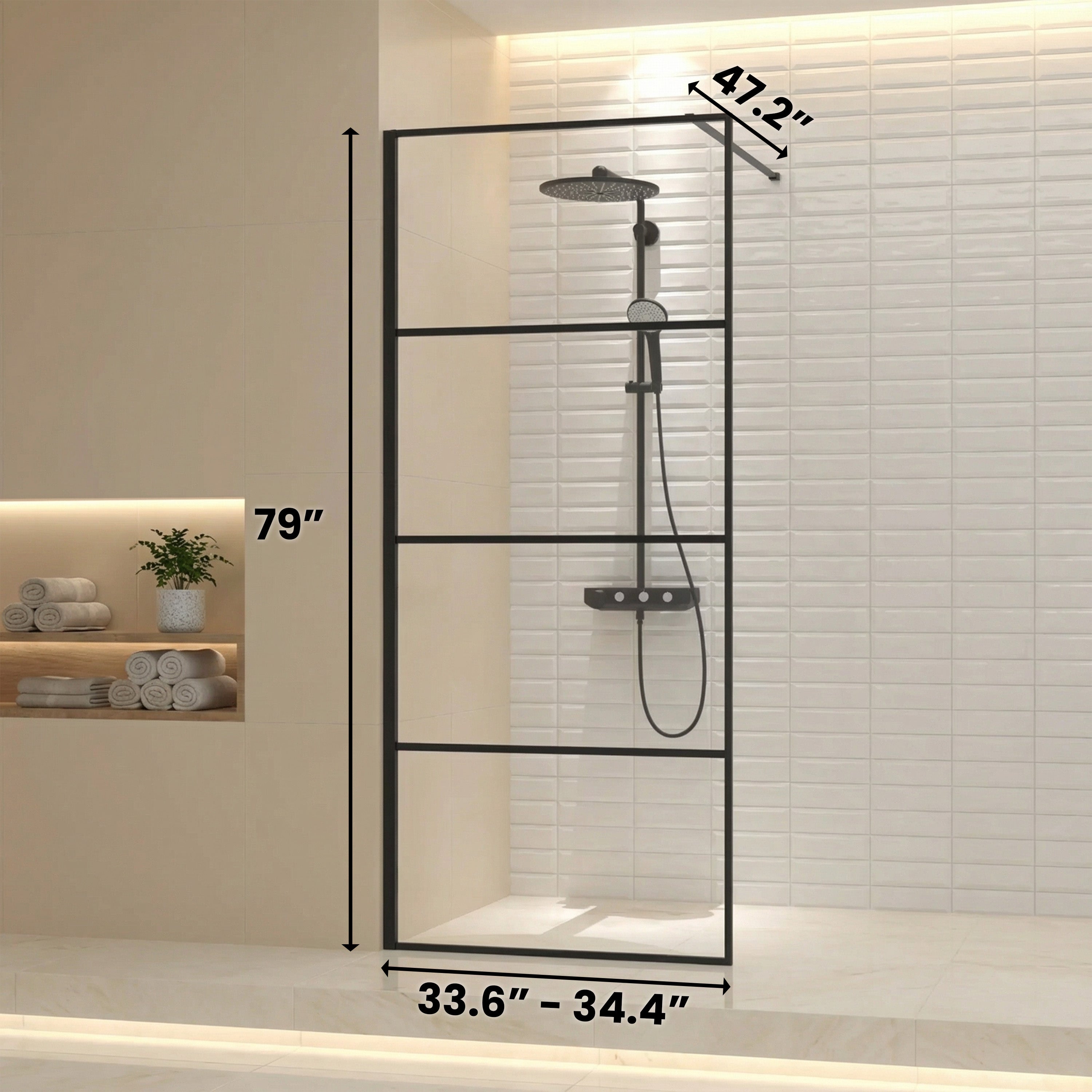 Redefine your shower space with the Tina Collection 34" x 79" Fixed Reversible Walk-In Shower Panel. Its minimalist matte black frame and clear glass design create a bright, open atmosphere, making any bathroom feel more spacious and luxurious.