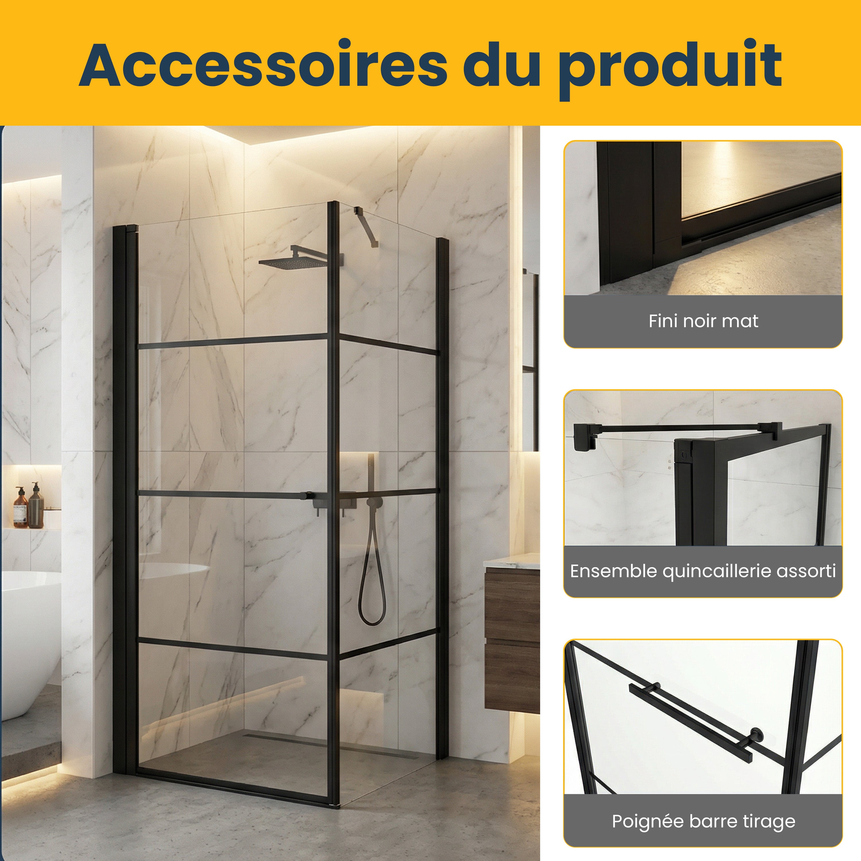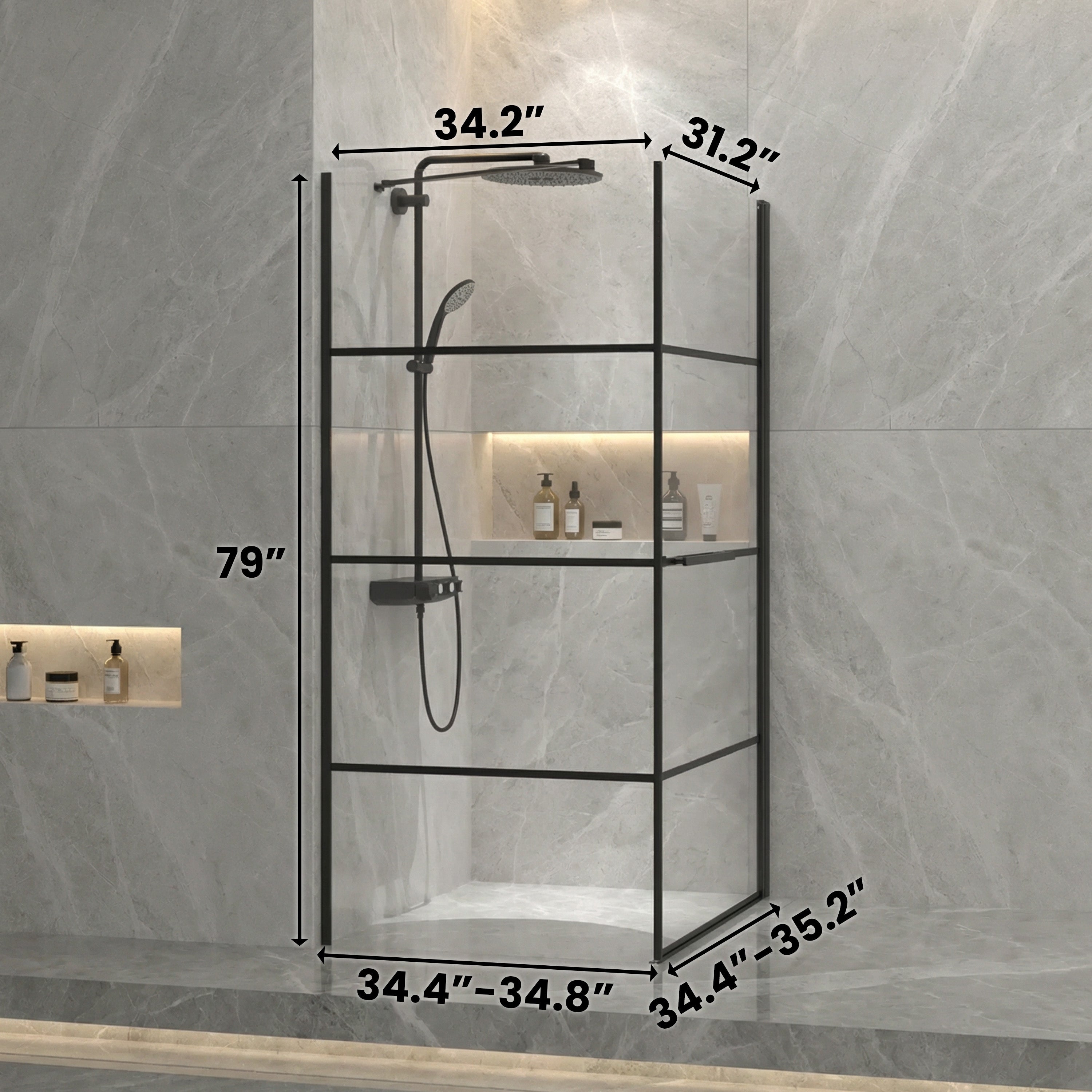 Upgrade your bathroom with the Tina Collection 36" x 36" x 79" Framed Square Shower Enclosure, designed to bring elegance and functionality into your daily routine. Its bold matte black linear frame pairs perfectly with clear 8 mm tempered glass, creating a bright, open, and modern look.