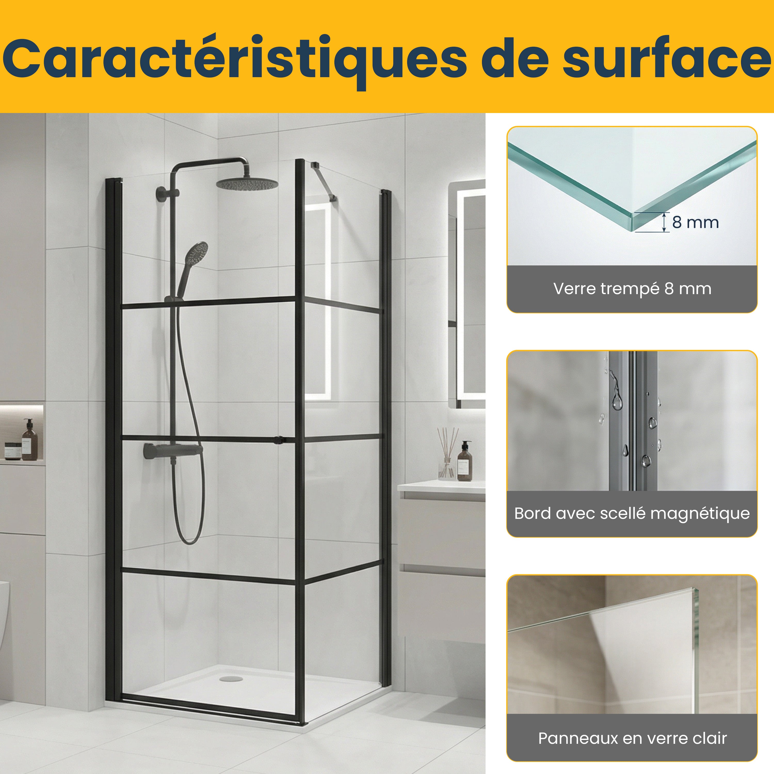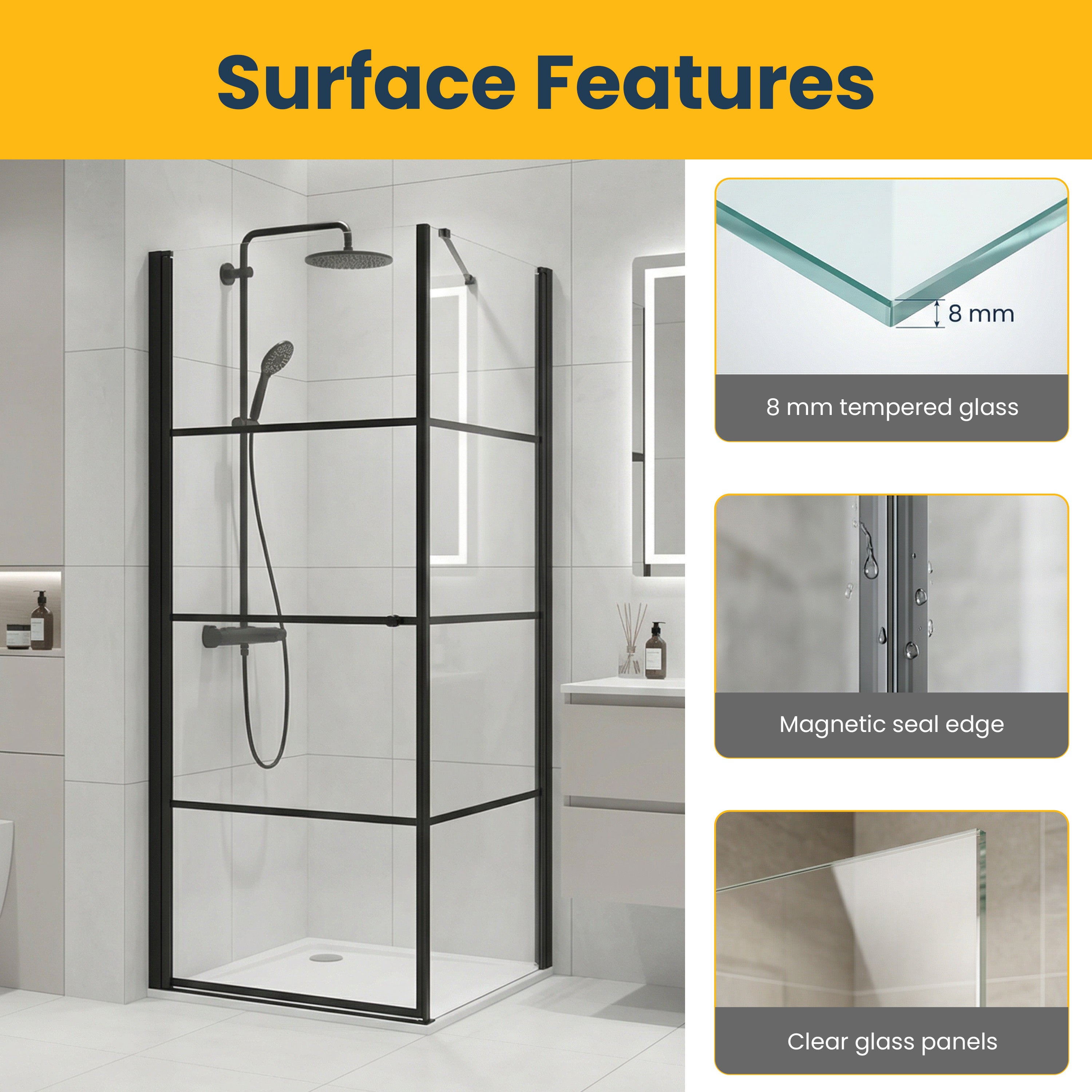 Matte Black Frame: Bold, modern design that complements any bathroom style.
