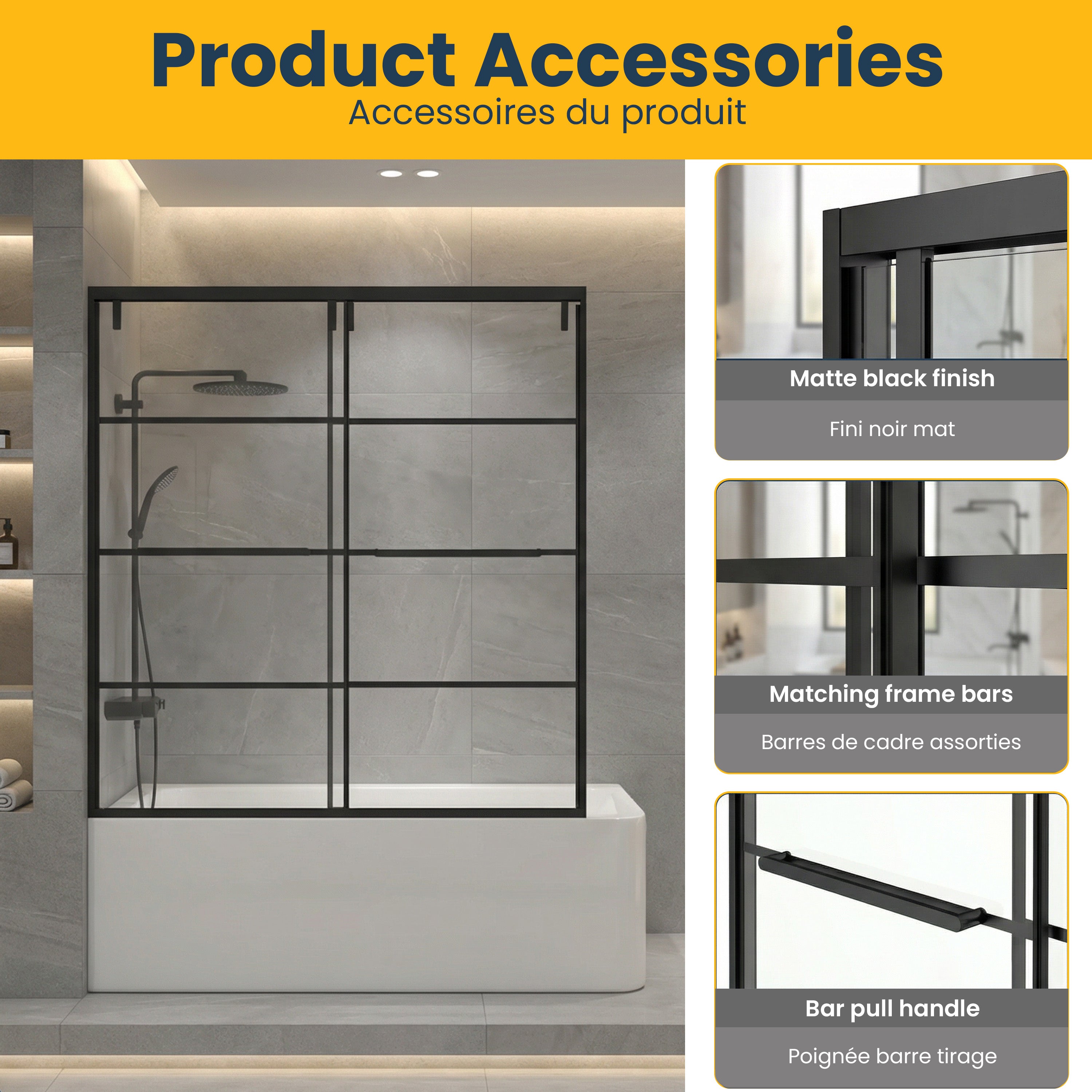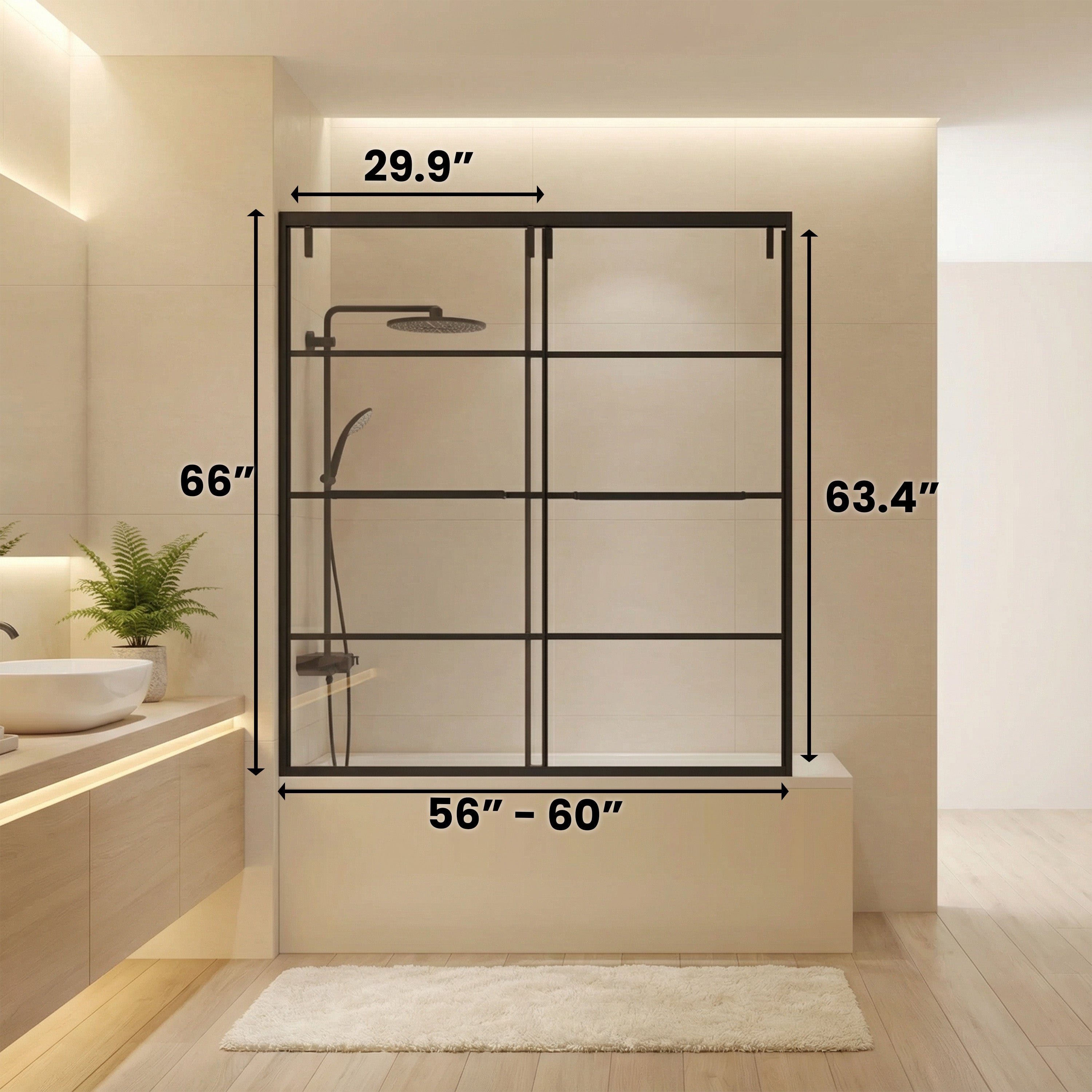Give your bathroom a sleek, modern upgrade with the Tina Collection 60" x 66" Framed Reversible Sliding Bathtub Door in Matte Black with Clear Glass. Designed for both style and comfort, it features a smooth, quiet glide, crystal-clear tempered glass, and a bold matte black frame that transforms any space into a contemporary retreat.