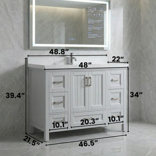 48" Matte White Freestanding Vanity with countertop Ceramic Sink Matte White and Chrome Handles Melanie Collection