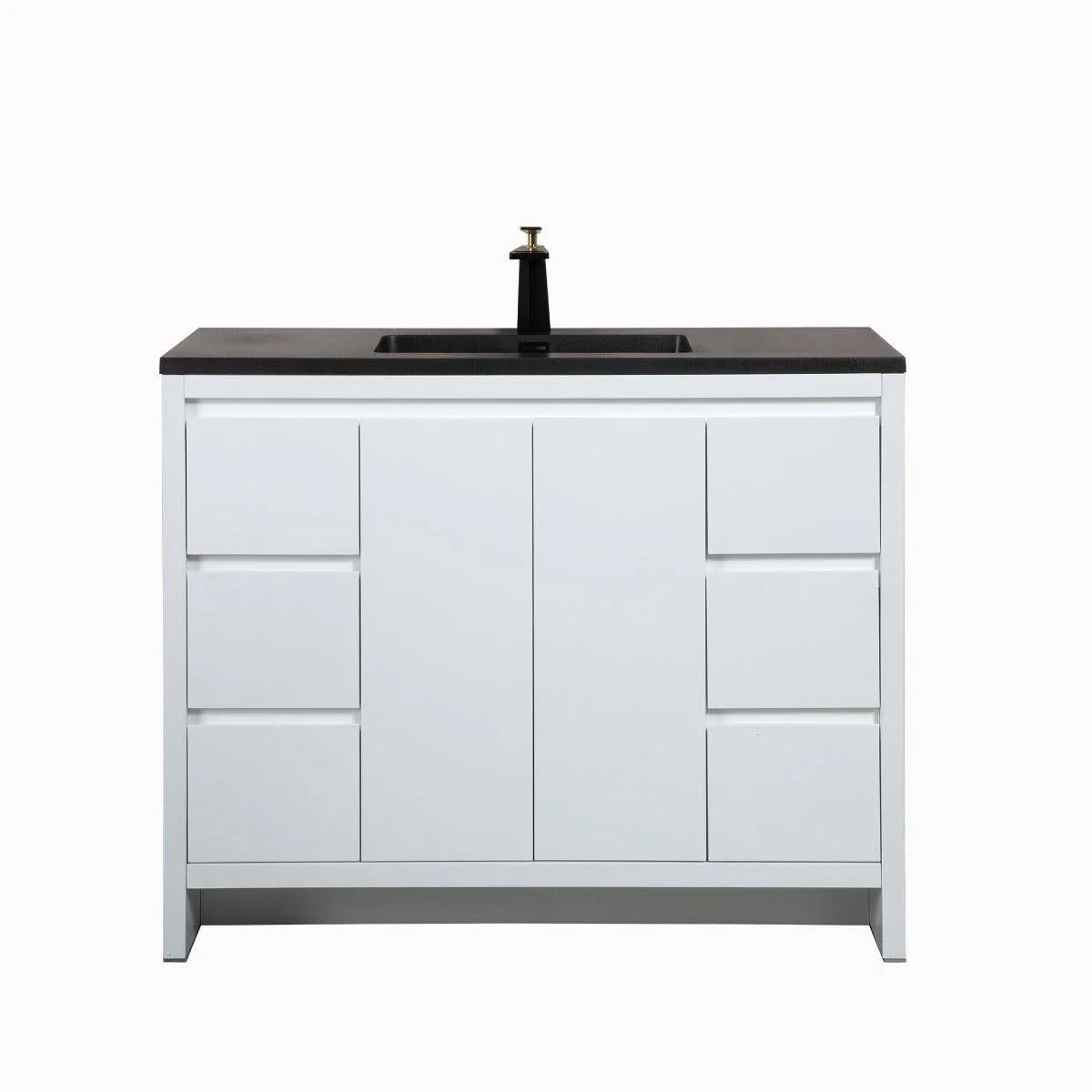 40" Matte White Freestanding Bathroom Vanity with Black Engineered Quartz Countertop