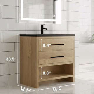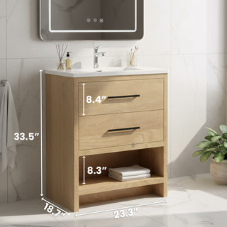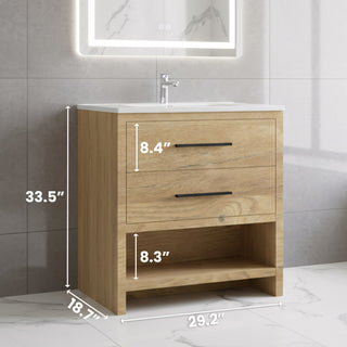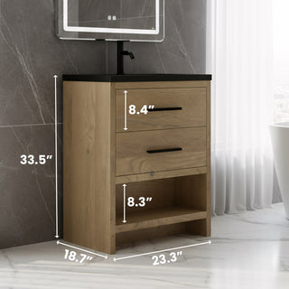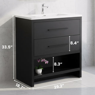 30" Frosted Oak Freestanding Single Sink Bathroom Vanity with Black Ceramic Countertop