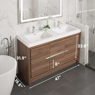 40" Walnut Freestanding Bathroom Vanity with White Polymarble Countertop