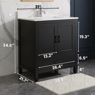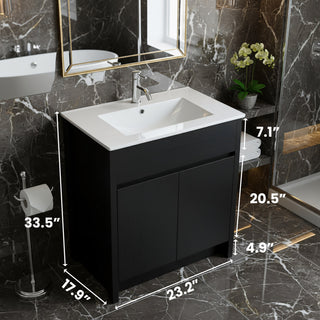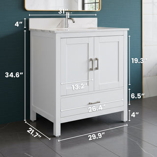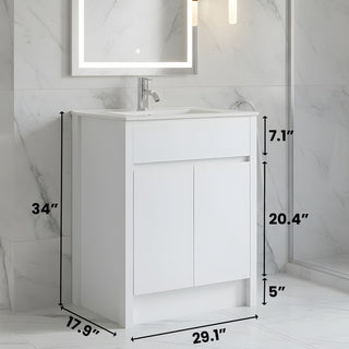 30" Matte White Freestanding Bathroom Vanity with White Ceramic Countertop