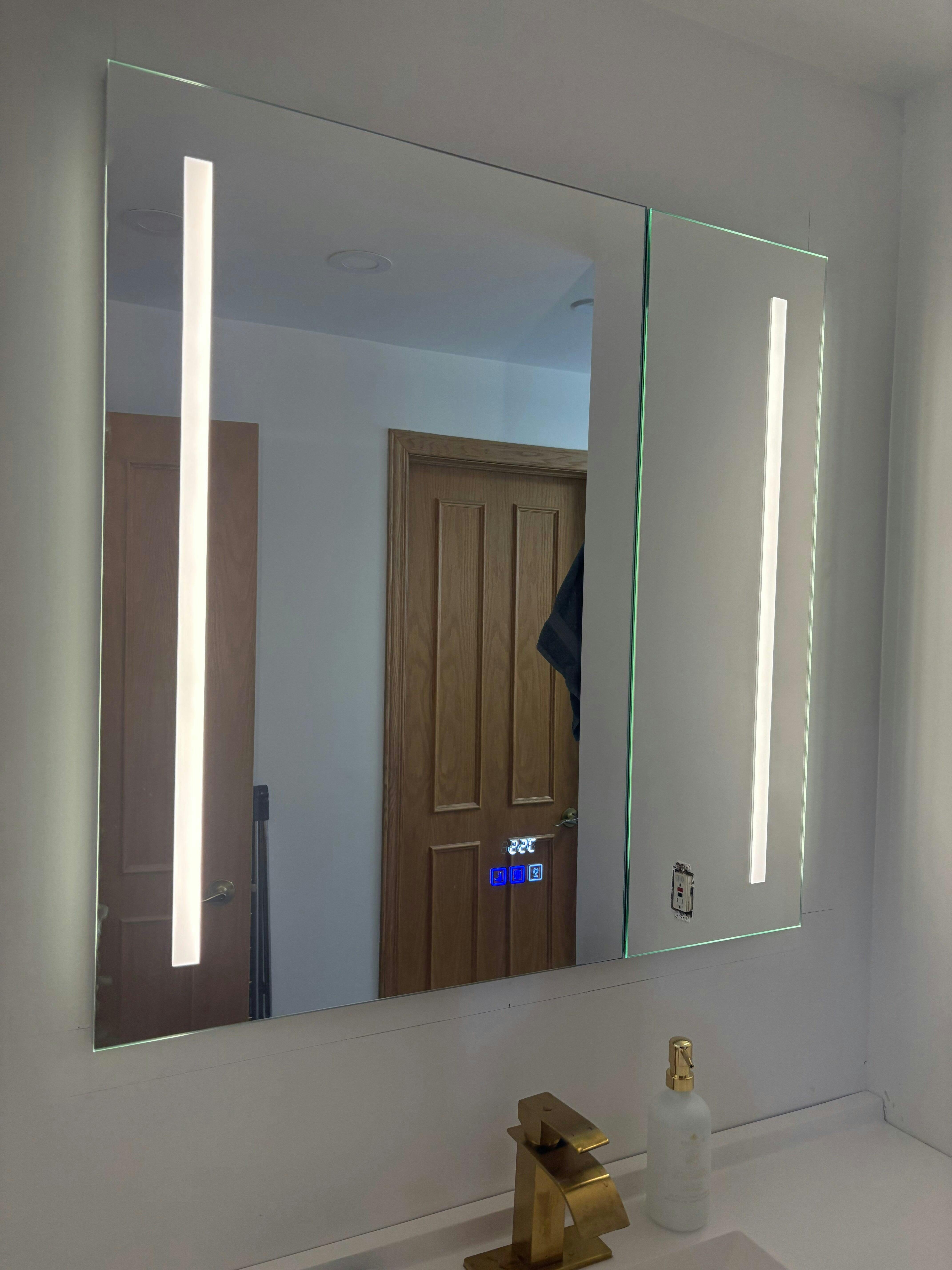 This lighted bathroom mirror with dimming function illustrates a modern frameless design with energy-saving lighting that will brighten up your bathroom perfectly. Each mirror is delivered ready to be assembled.