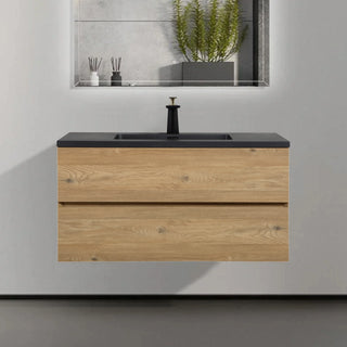 Meuble-Lavabo Mural 40po Chêne Brut avec Comptoir de Quartz d'ingénierie Noir