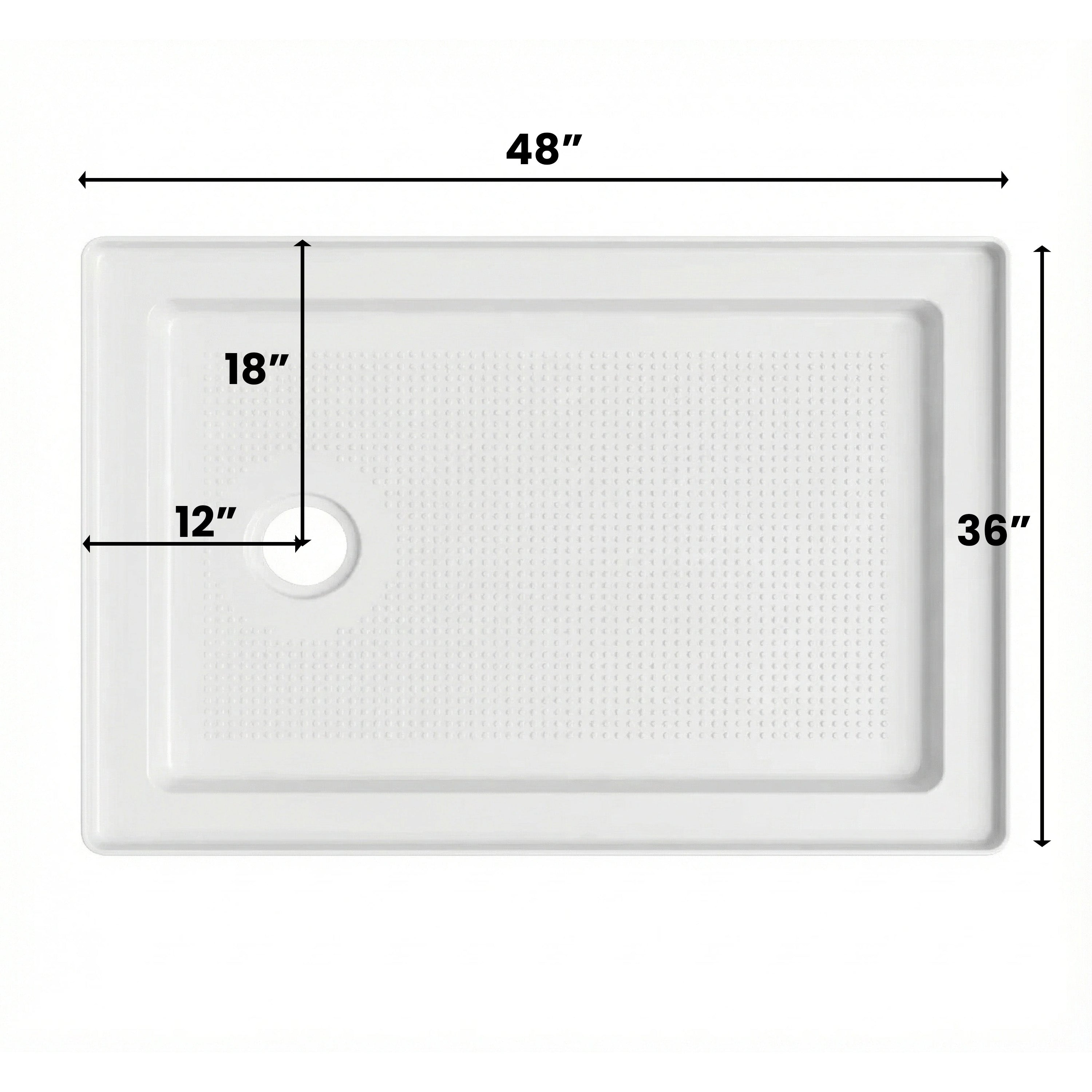 Base de Douche Acrylique Blanc 48 po x 36 po - Installation 2 Murs - Drain à Gauche