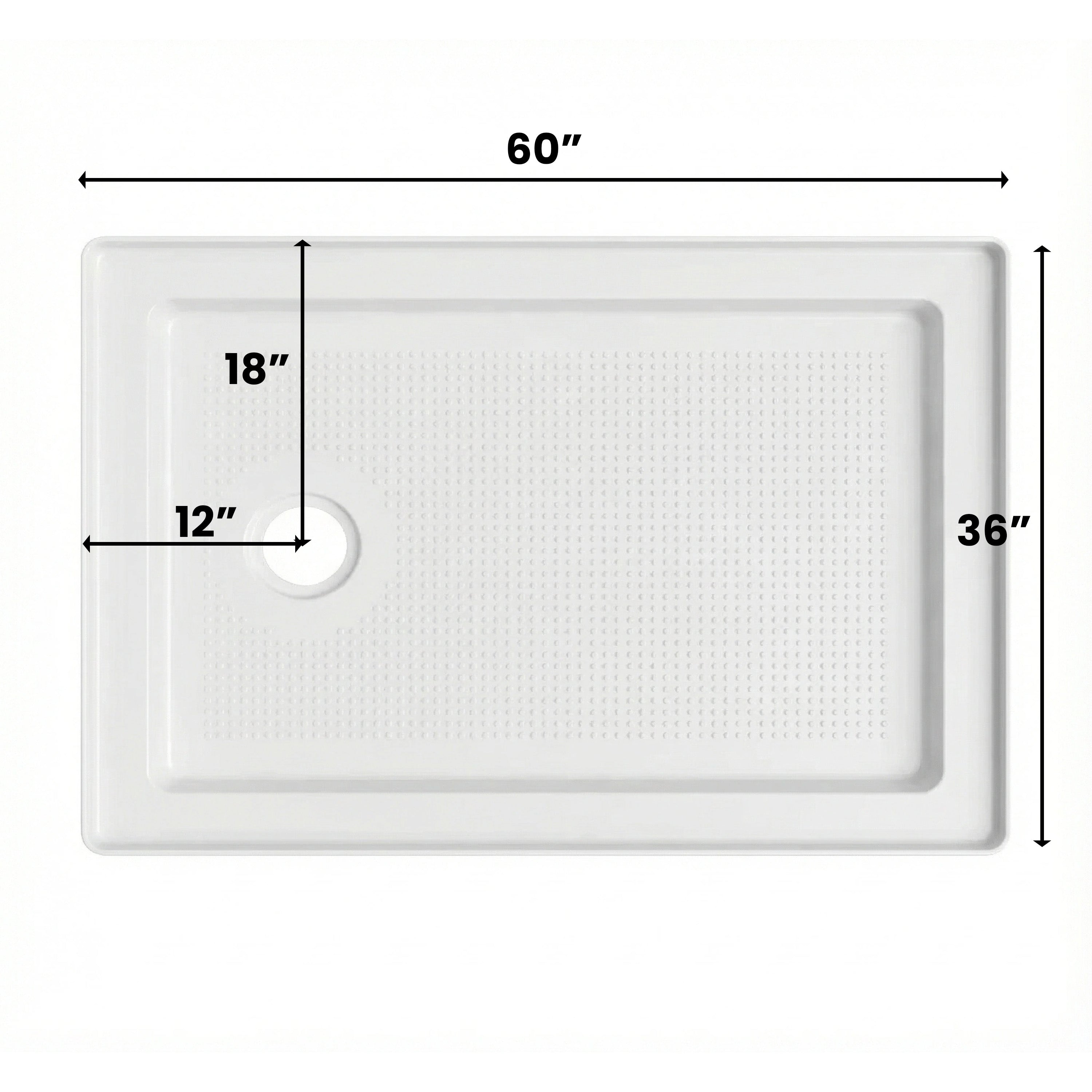 Base de Douche Acrylique Blanc 60 po x 36 po - Installation 2 Murs - Drain à Gauche