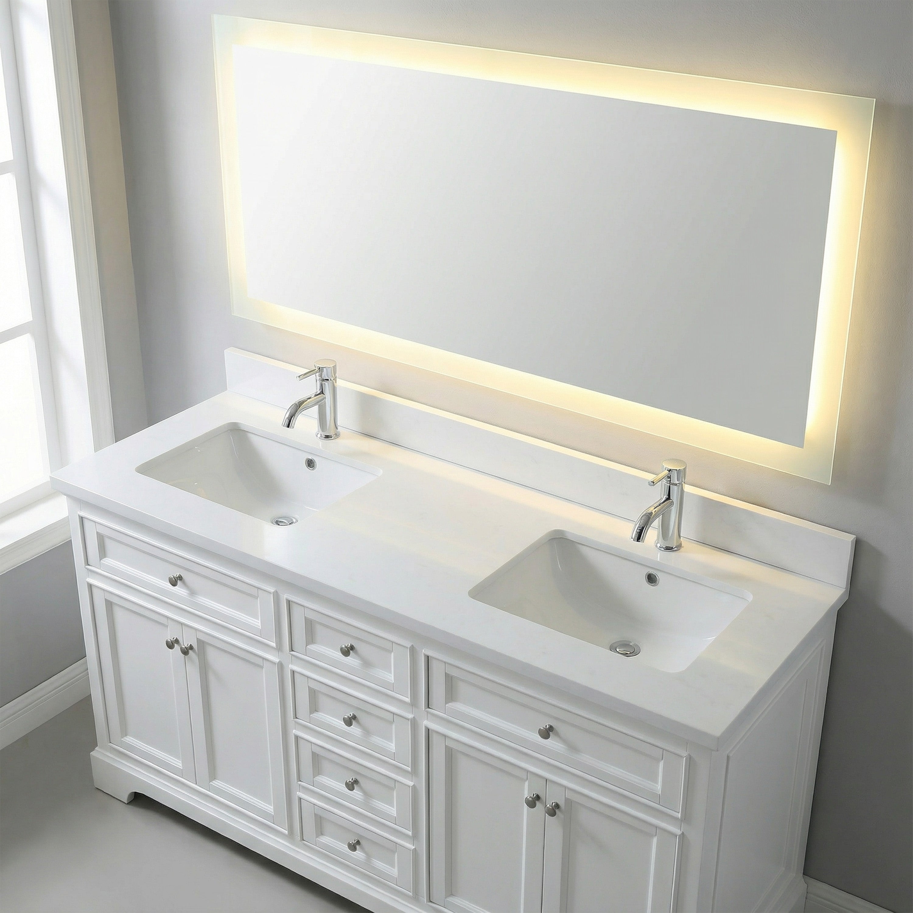 Affirmez votre style dans votre salle de bain avec la toute nouvelle collection Milan de Golden Elite. Conçue selon les tendances actuelles en matière de décoration intérieure, cette vanité à double vasque de 72 pouces associe une élégante finition laquée blanche mate à la beauté intemporelle d'un comptoir en marbre blanc reconstitué.