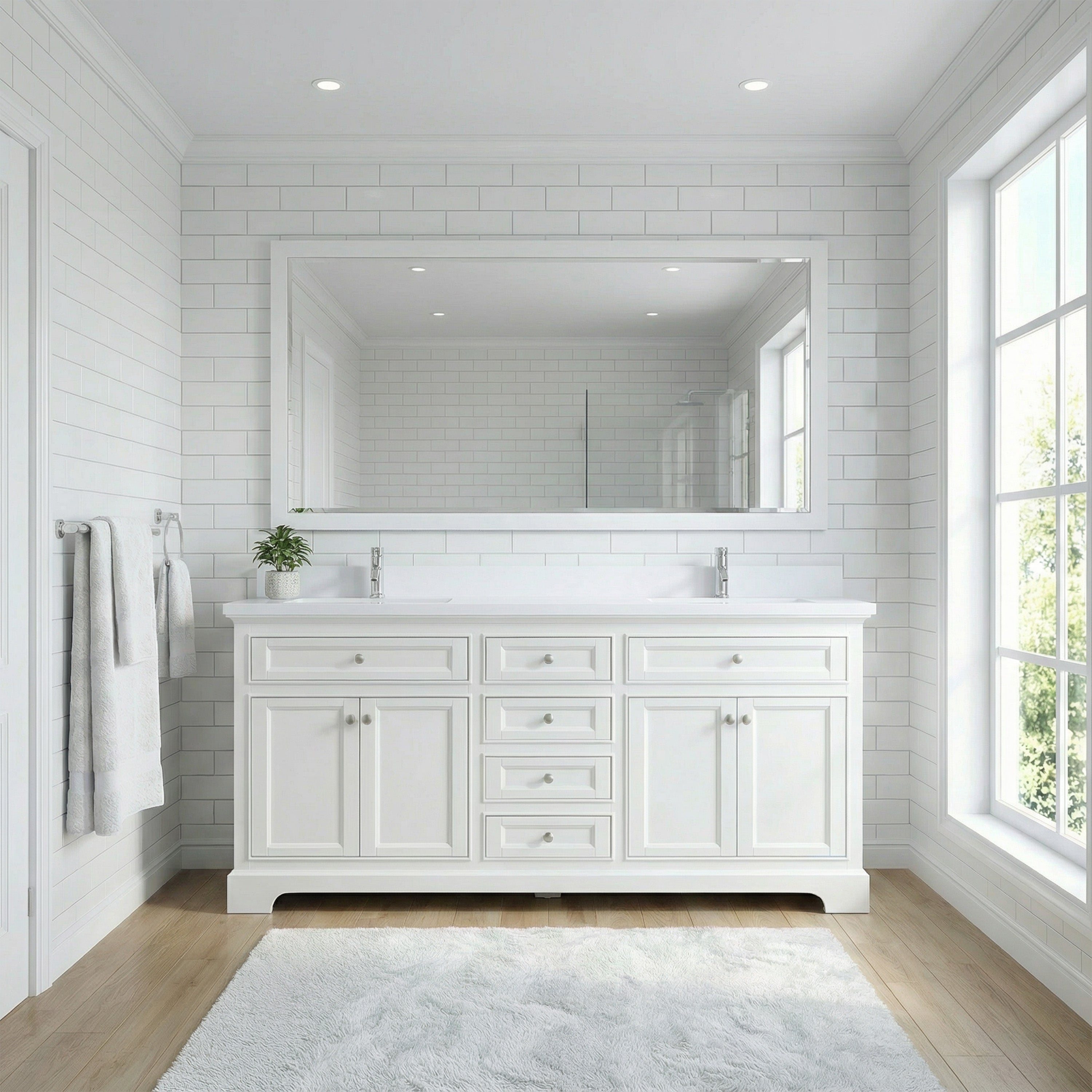 Meuble-lavabo spacieux de 72 po sur pied avec double vasque, idéal pour les grandes salles de bains
