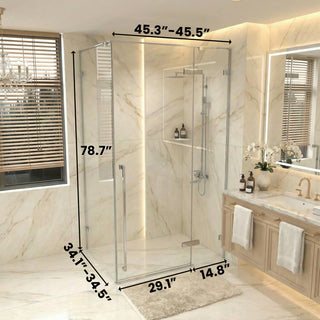 Rehaussez le charme de votre salle de bain avec les ensembles de portes de douche de 48 pouces de Golden Elite Deco. Disponibles avec, sans ou avec cadre, ces portes s'adaptent à tous les goûts et besoins pratiques. Fabriquées en verre trempé durable, elles offrent une vue dégagée qui agrandit et rend votre espace plus accueillant. Choisissez parmi des finitions comme le chrome poli, le nickel brossé ou le noir mat pour une harmonie parfaite avec votre décoration. Chaque ensemble est conçu pour une installation facile et est doté d'un verre résistant aux taches d'eau et aux résidus de savon, simplifiant ainsi l'entretien.