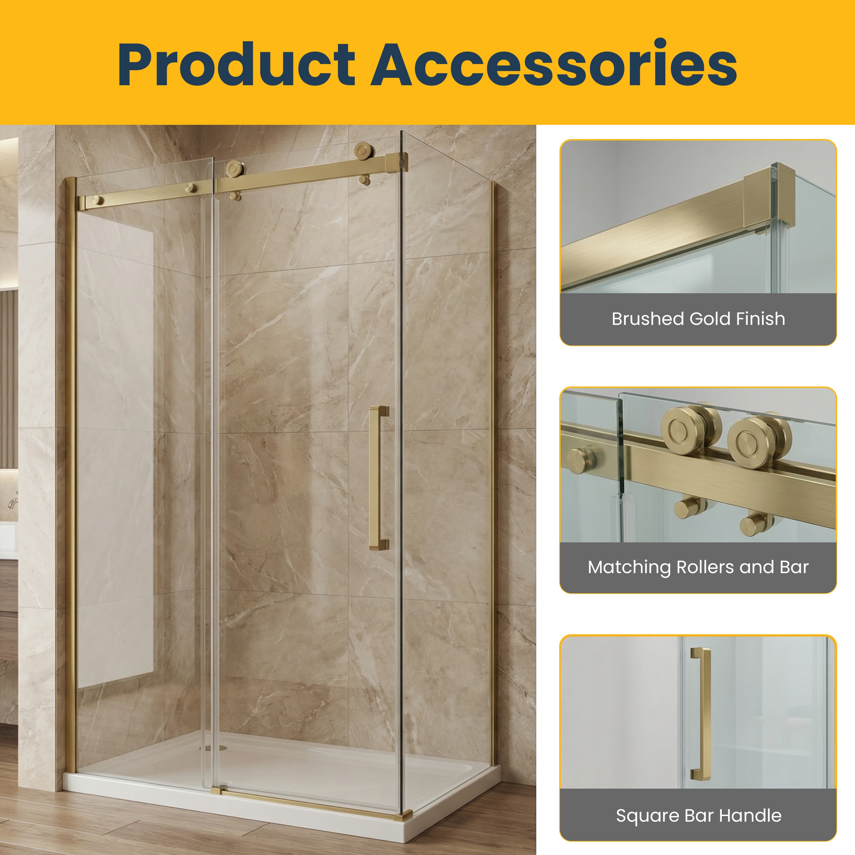 48" x 32" x 75" x 10mm Reversible Sliding Shower Door Square Design Hardware in Brushed Gold with 32" Side Panel sans base