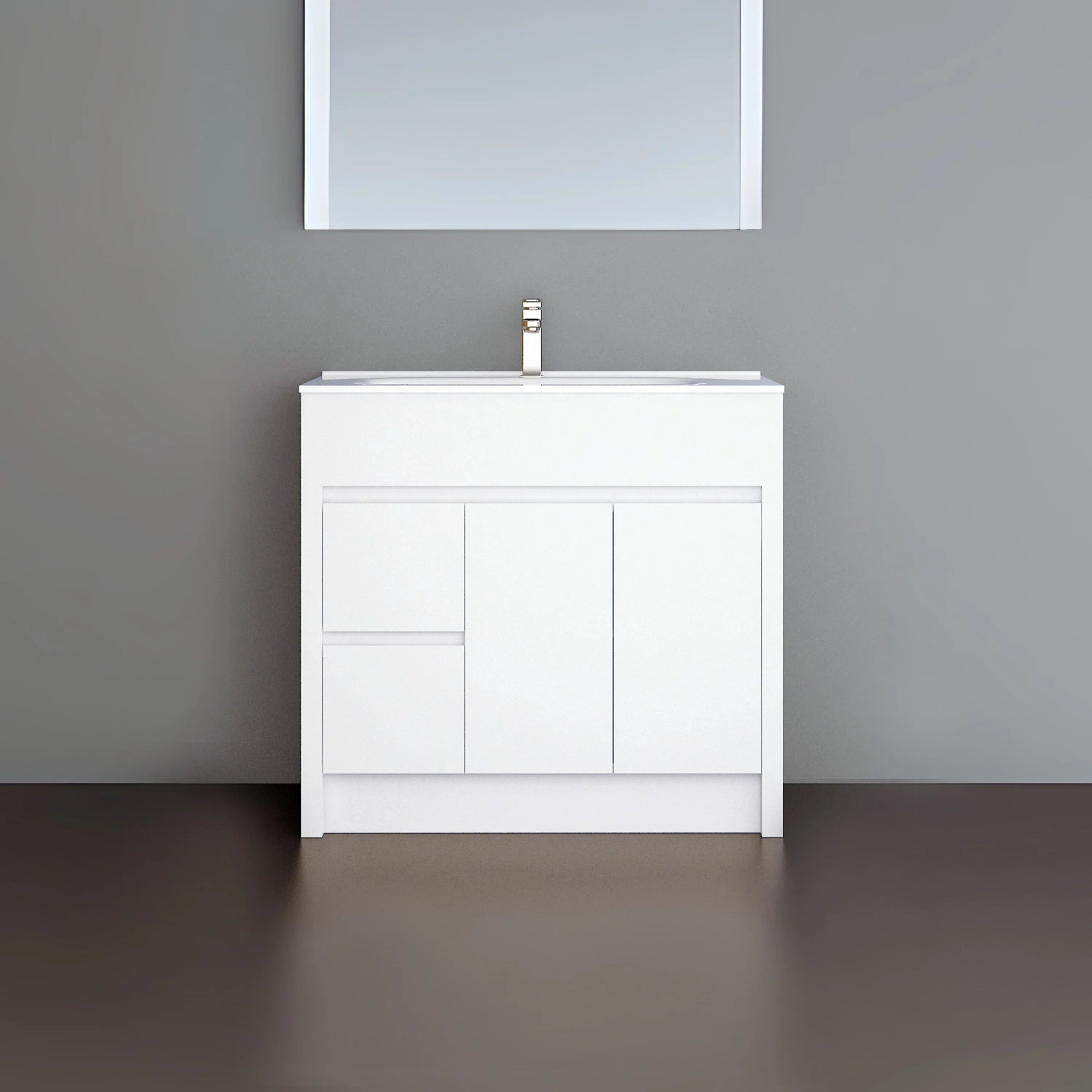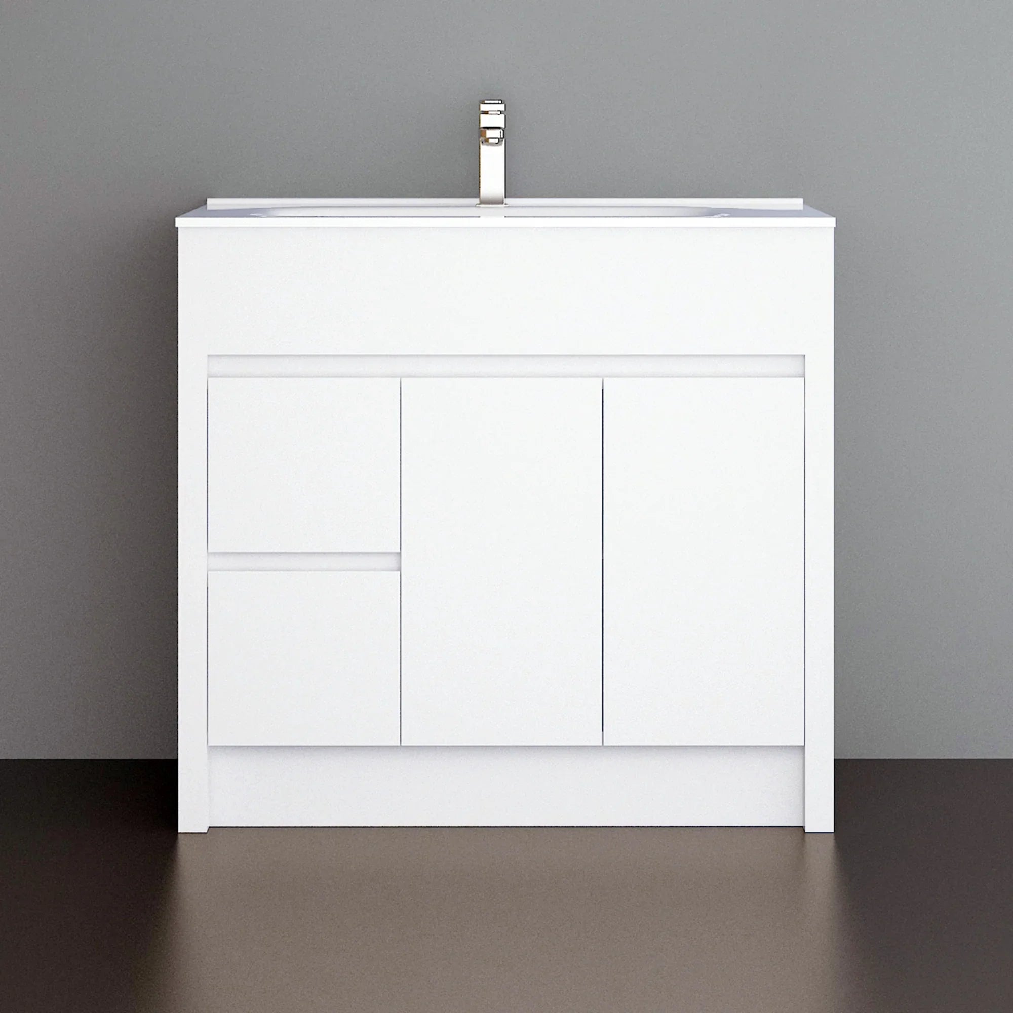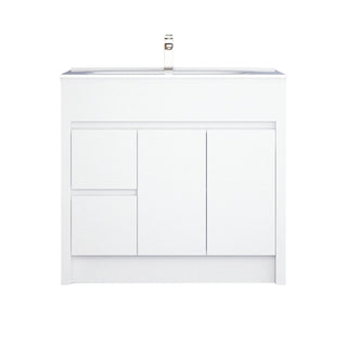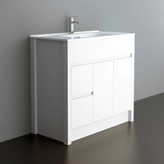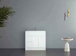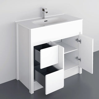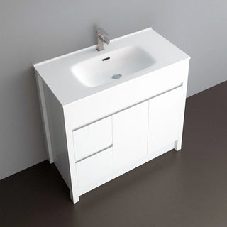 Meuble-Lavabo Autoportant 40po Blanc Mat avec Comptoir de Céramique Blanc