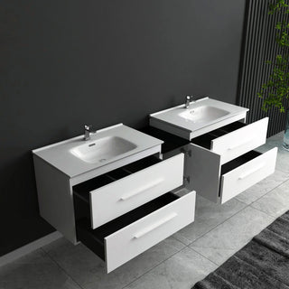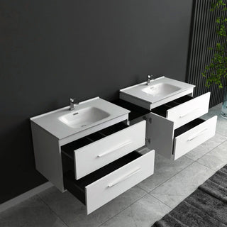 Meuble-Lavabo Mural 72po Blanc Mat avec Comptoir de Céramique Blanc
