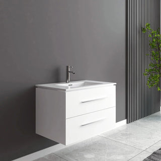 Meuble-Lavabo Mural 30po Blanc Mat avec Comptoir de Céramique Blanc