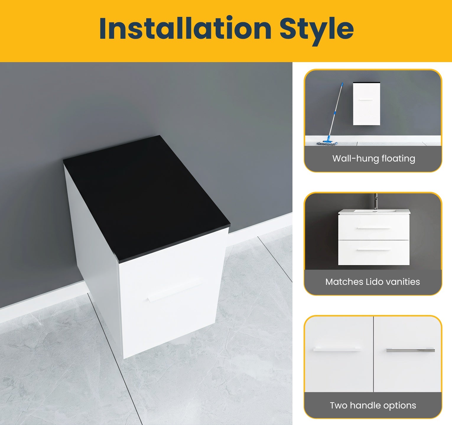 Remarque : Le meuble-lavabo est livré avec deux jeux de poignées en blanc mat et en métal chromé . Choisissez et installez selon vos préférences pour personnaliser votre espace.