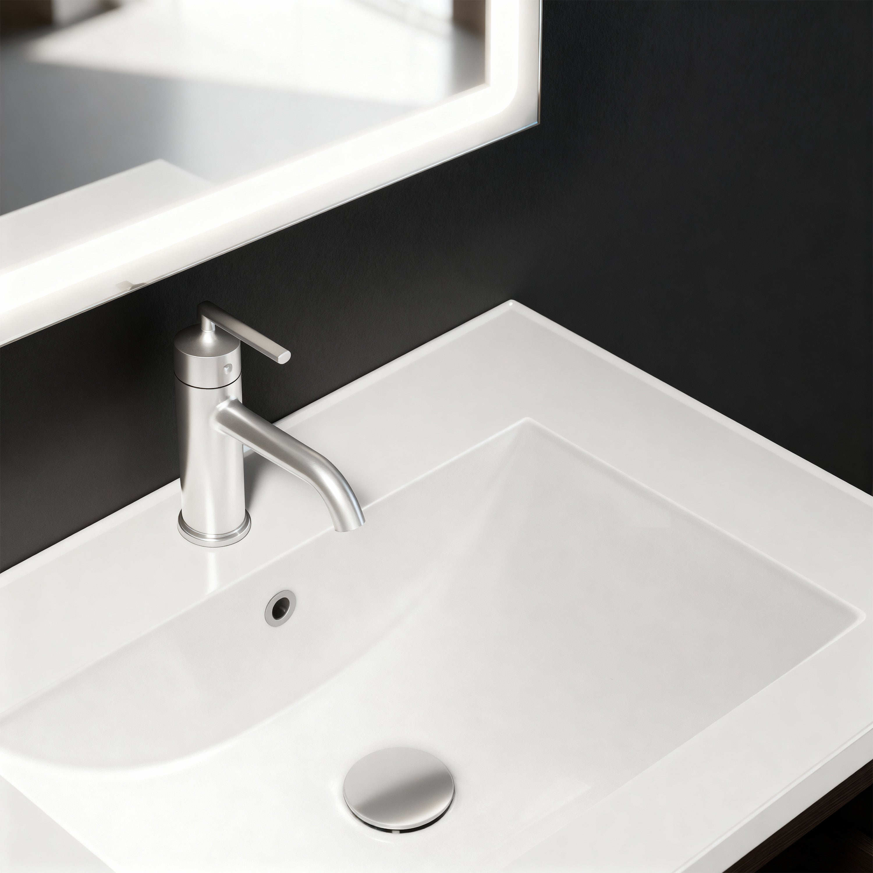 - Le plan de travail pré-percé accueille les robinets à montage unique et comprend un évier rectangulaire intégré avec trop-plein pour plus de commodité moderne