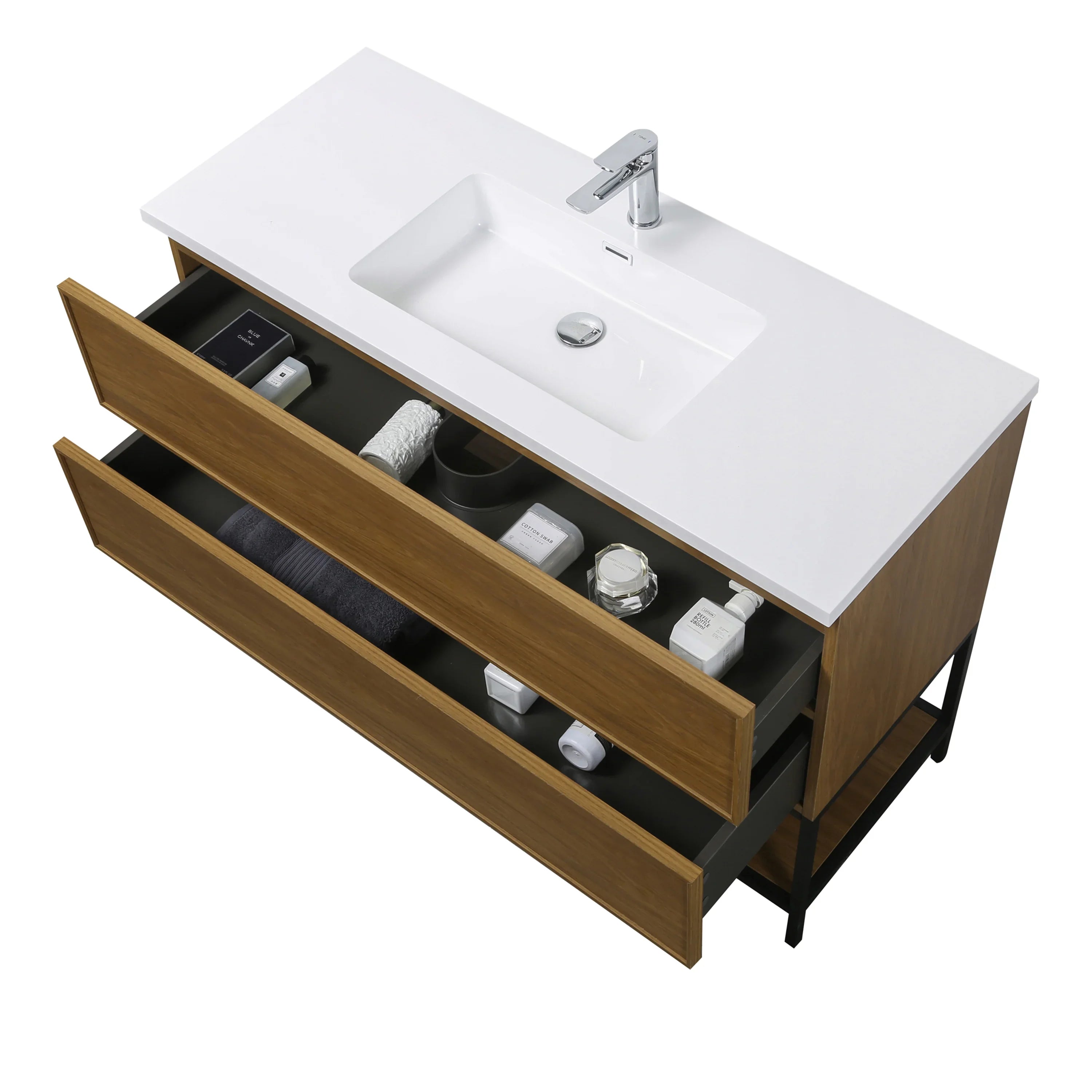 Meuble-Lavabo Mural 48po Noyer Miel Doré avec Comptoir de Polymarbre Blanc