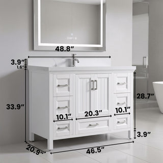 Meuble-lavabo autoportant blanc mat de 48 po avec comptoir, vasque en céramique, poignées blanches mates et chromées, collection Melanie
