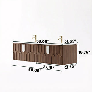 Vanité Mural DEL 63 po Brun Laité avec Comptoir en Marbre Kari Ice Jade et Doubles Lavabos en Céramique