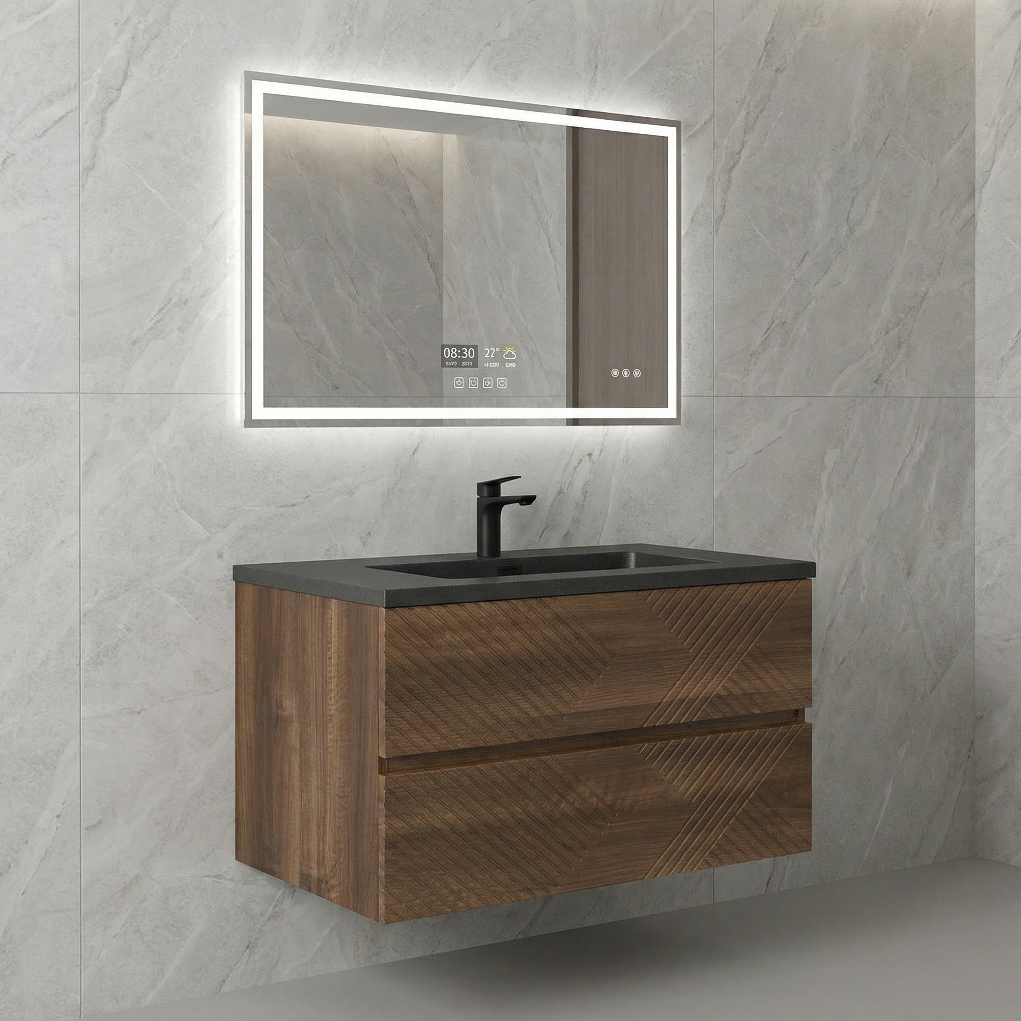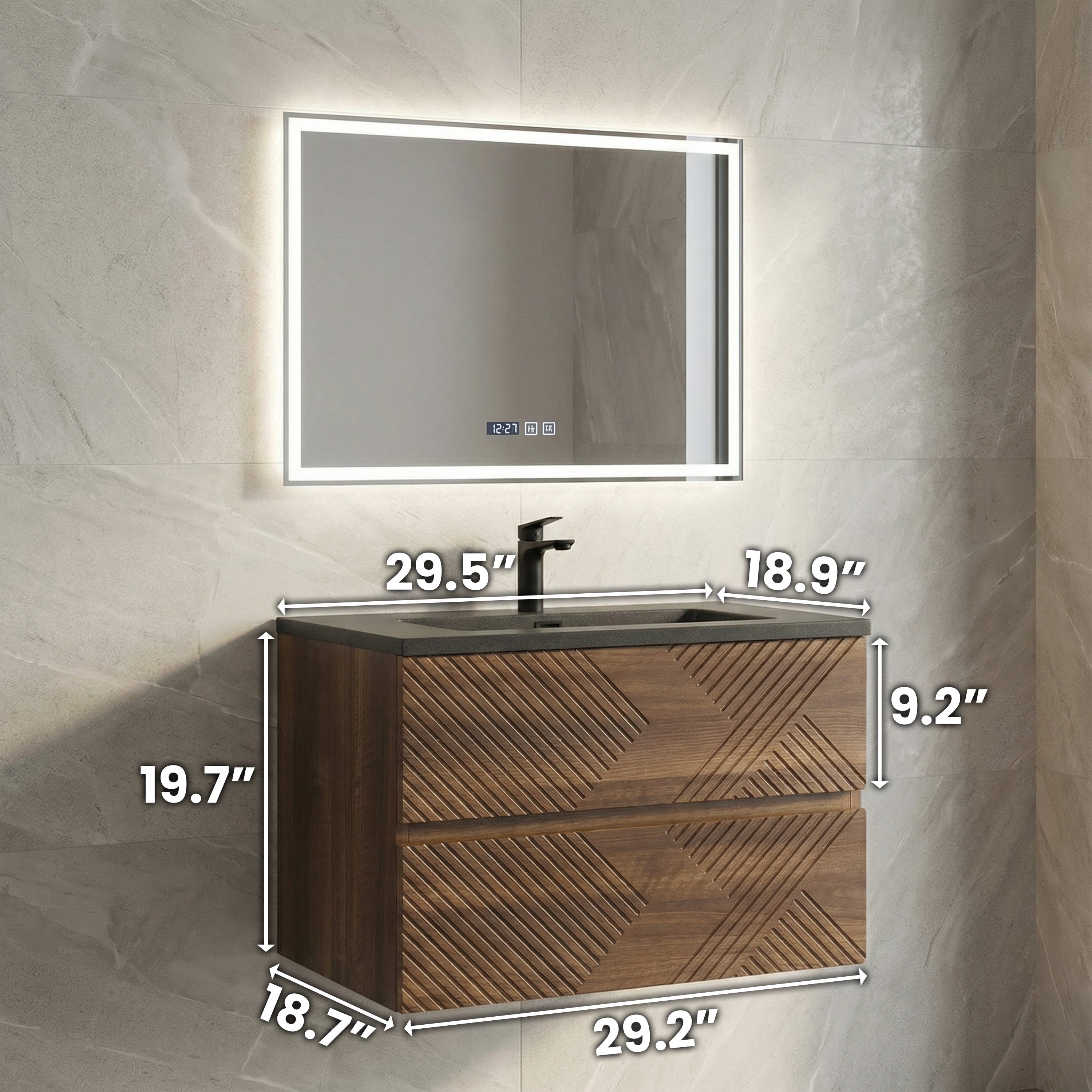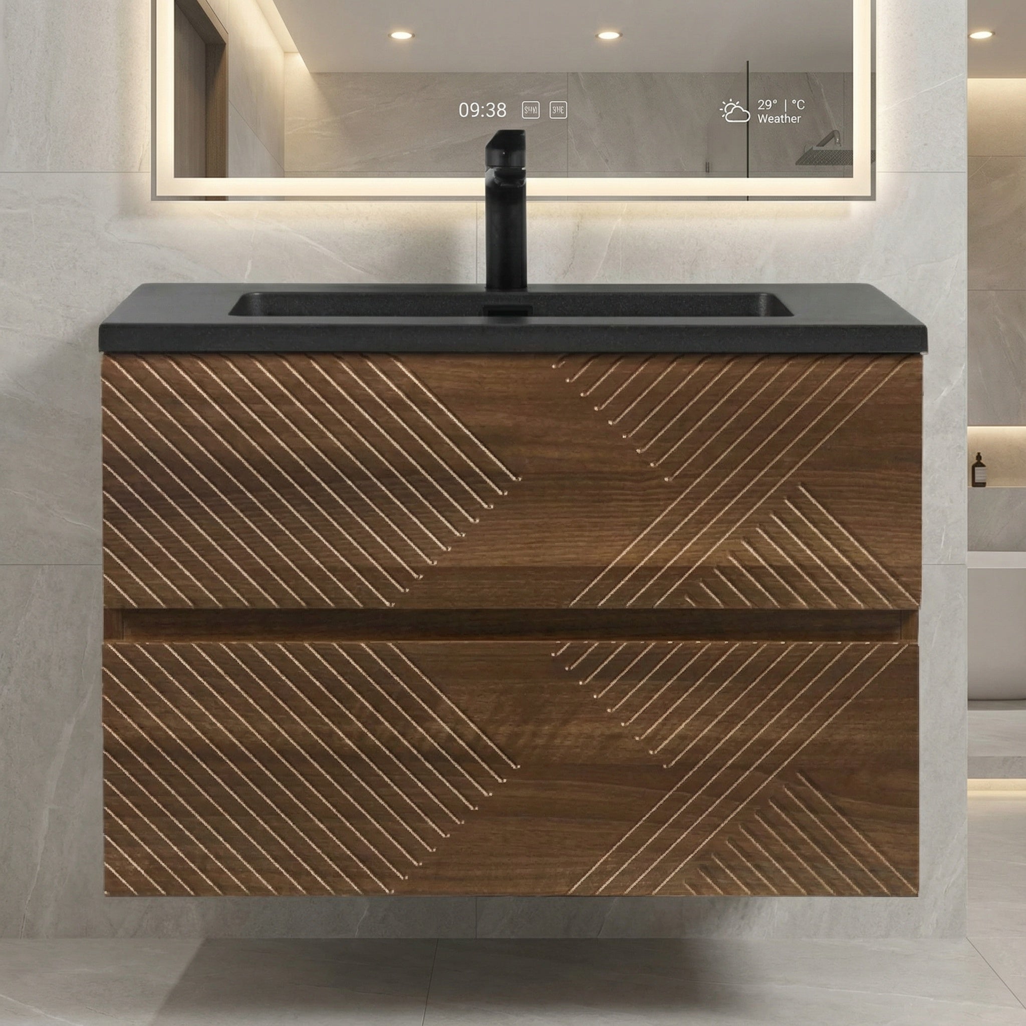 Meuble-Lavabo Mural 30po Noyer avec Comptoir de Quartz d'ingénierie Noir