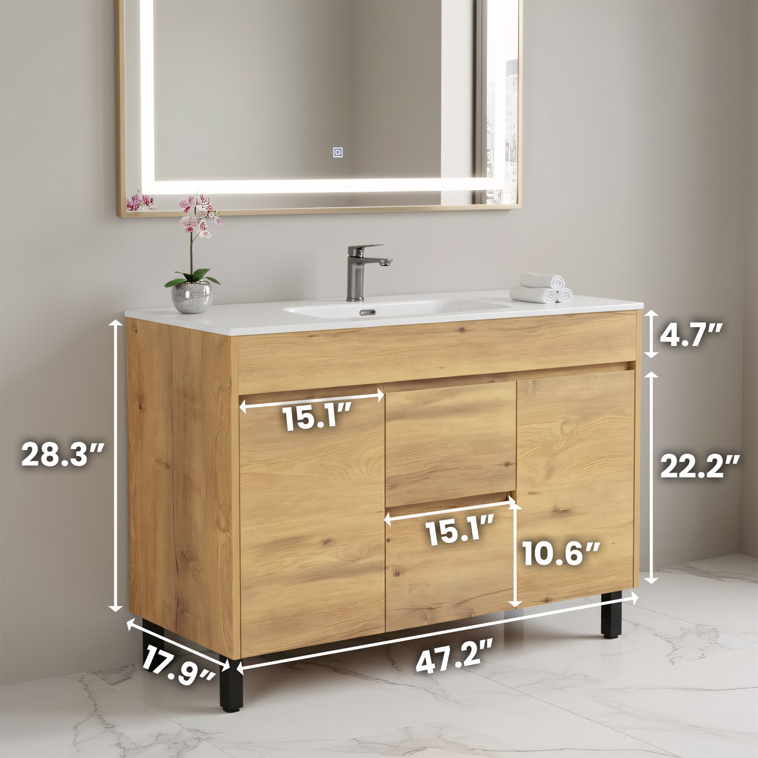 Meuble-Lavabo Autoportant 48 po Chêne Givré avec Comptoir de Céramique Blanc