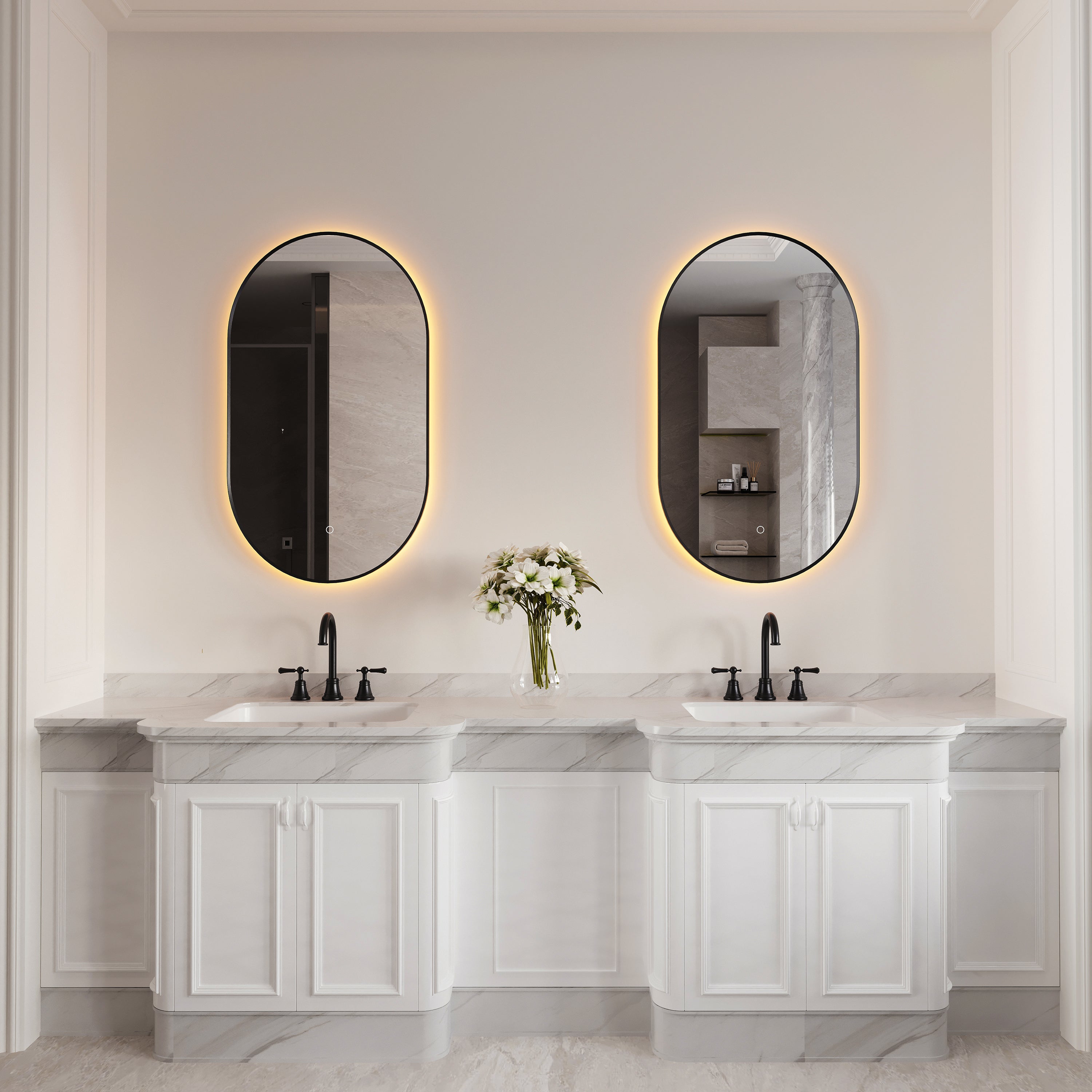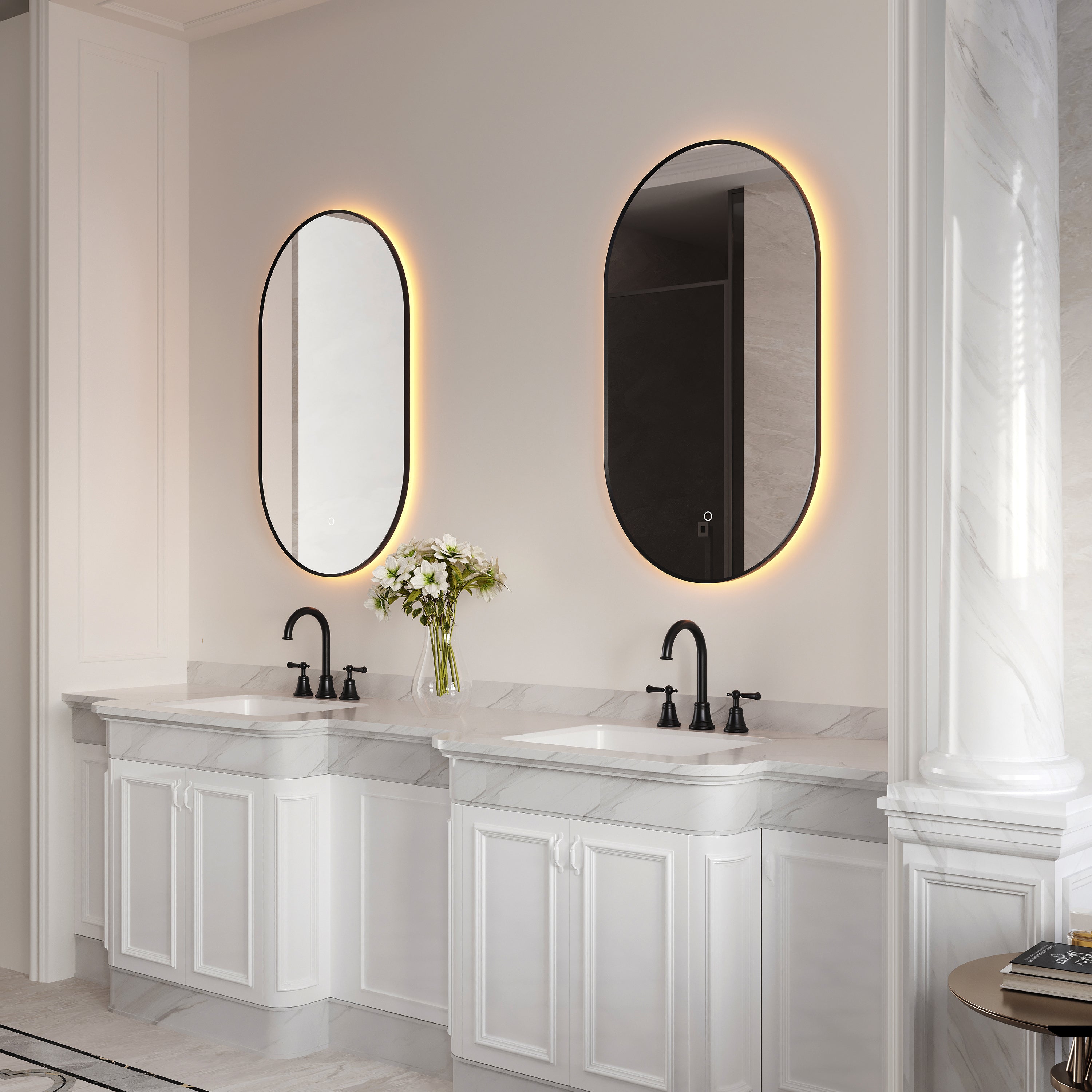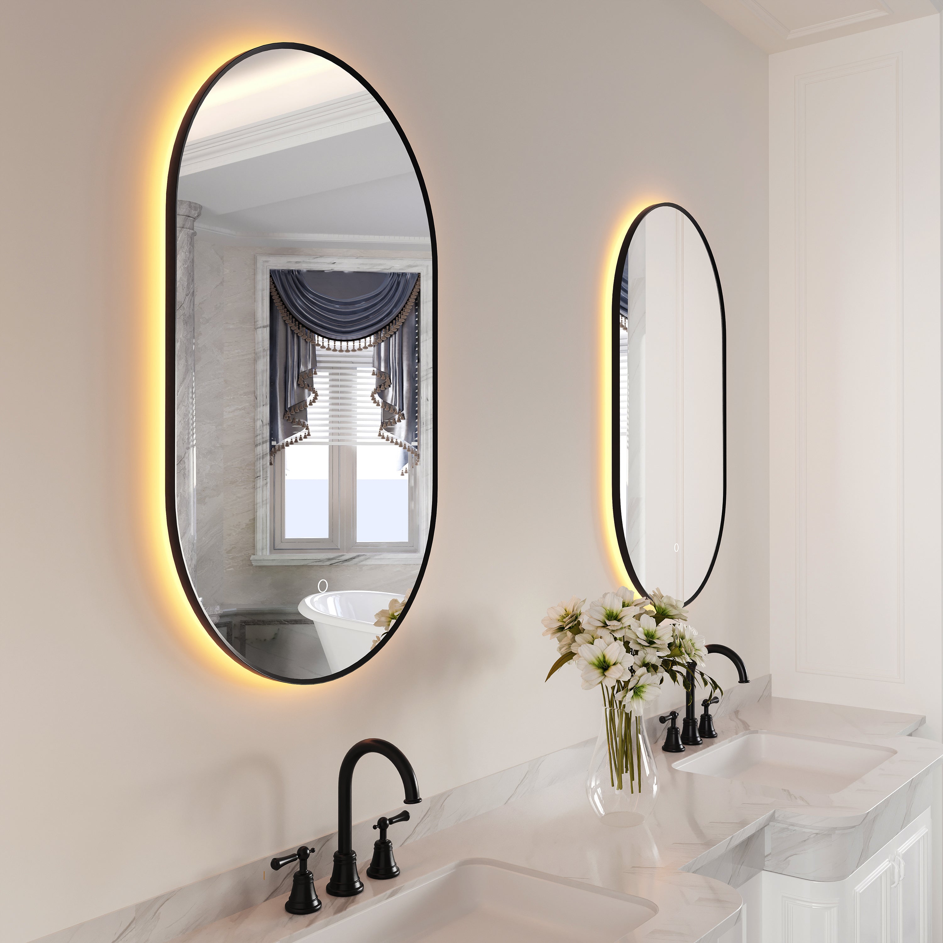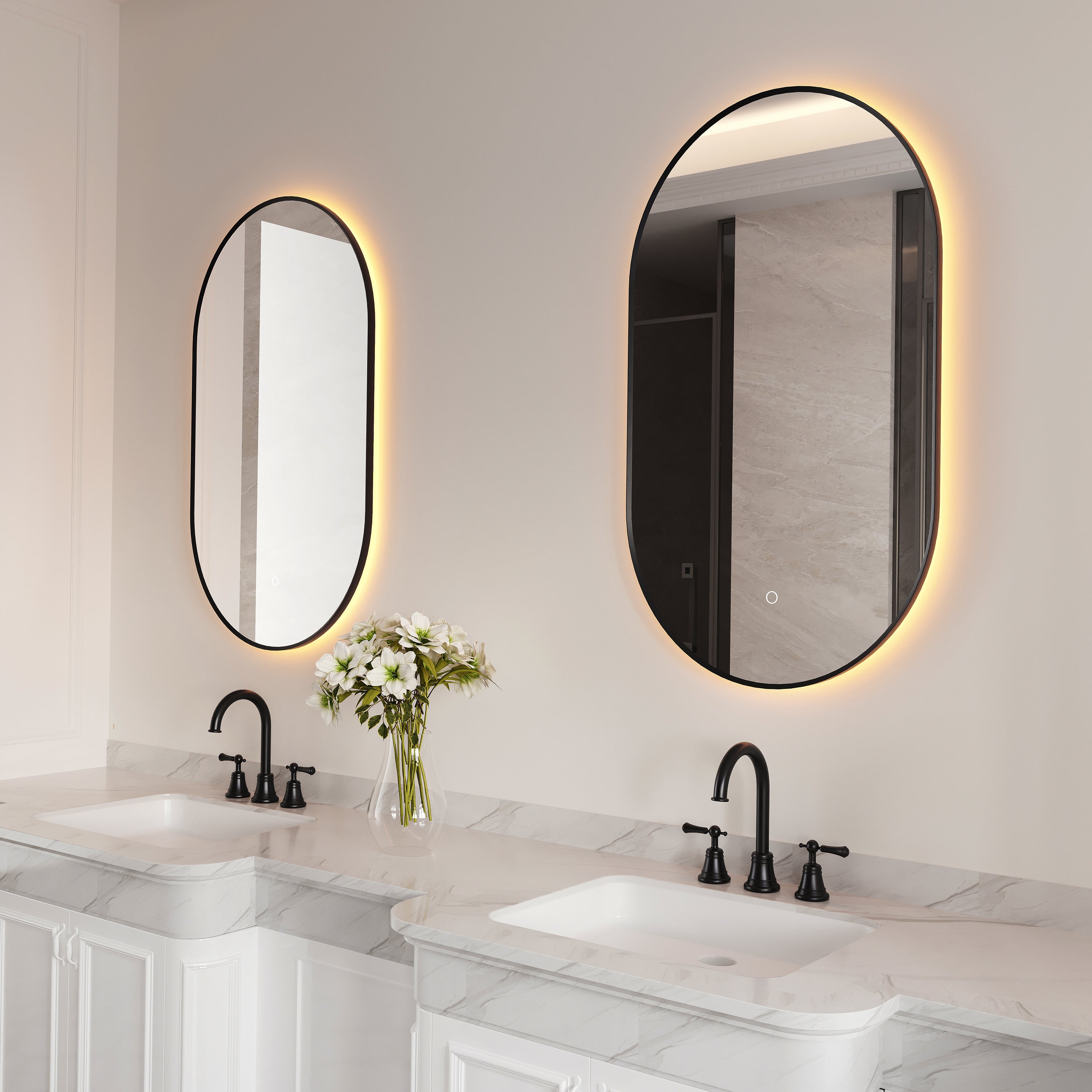 Miroir de Salle de Bain Ovale à DEL 24 po x 40 po avec Cadre Noir – Miroir Antibuée avec Contrôle de Gradation Adaptatif, Luminosité et Température de Couleur Réglables (3000K/4000K/6000K)