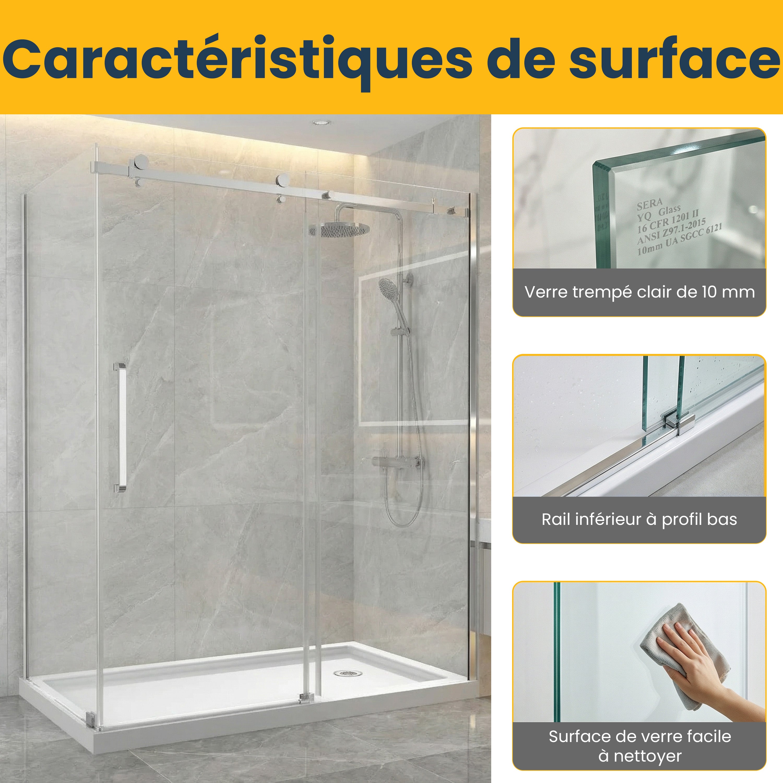 Son verre trempé durable de 10 mm et sa configuration à 2 parois en font un choix parfait pour les installations d'angle où la qualité rencontre le style.
