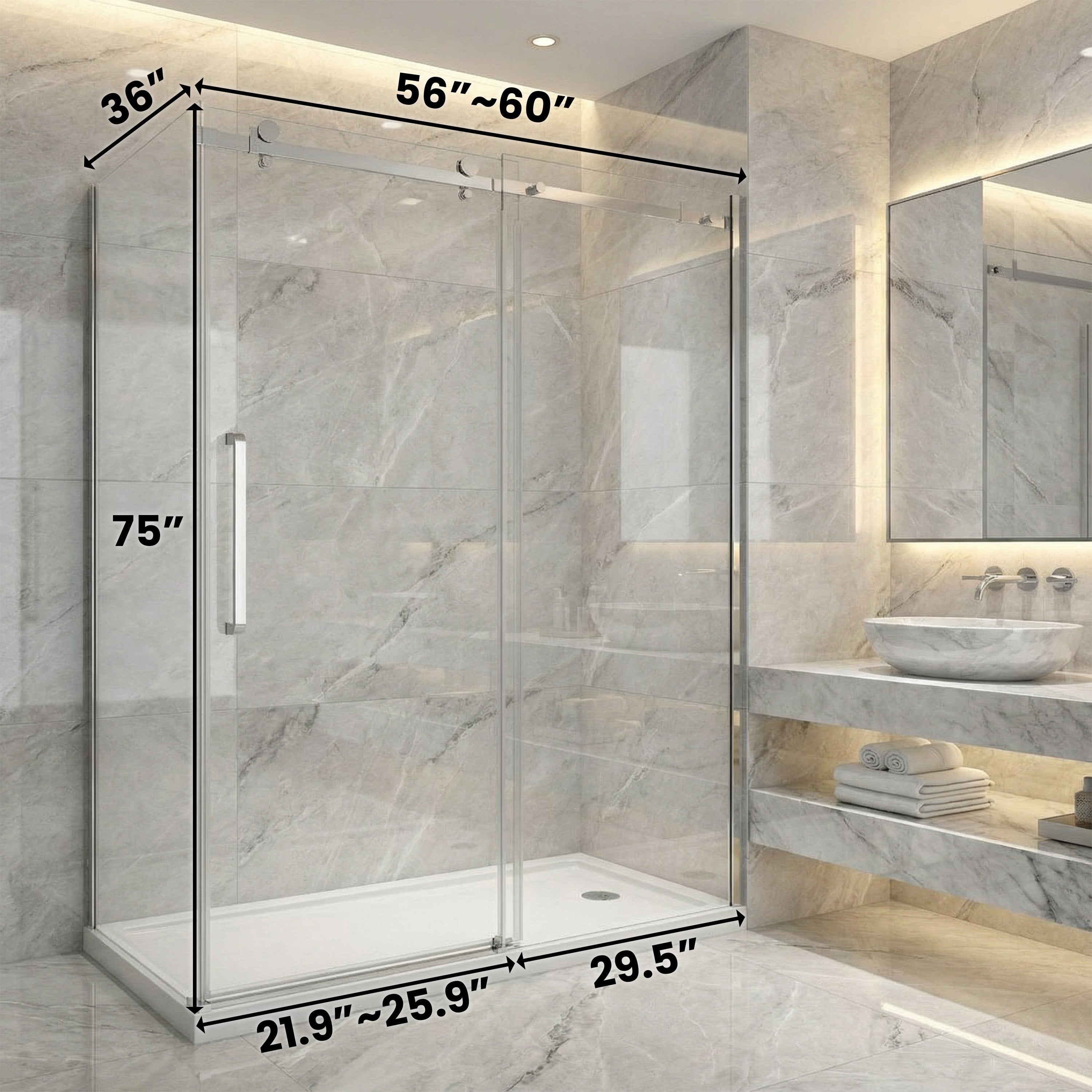 Améliorez votre salle de bain avec une précision moderne en utilisant notre 60 po Porte de douche coulissante réversible avec panneau latéral de 36 po . Conçue avec des lignes nettes et une quincaillerie chromée carrée, cette cabine de douche offre une déclaration architecturale audacieuse pour les salles de bains contemporaines.
