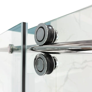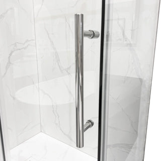 Porte de douche coulissante réversible chromée 60 po x 36 po x 75 po - Verre 10 mm, installation sur deux murs avec panneau latéral de 36 po.