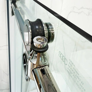 Rafraîchissez votre salle de bain avec les courbes épurées et le charme contemporain de notre porte de douche coulissante réversible de 60 po x 36 po avec panneau latéral.