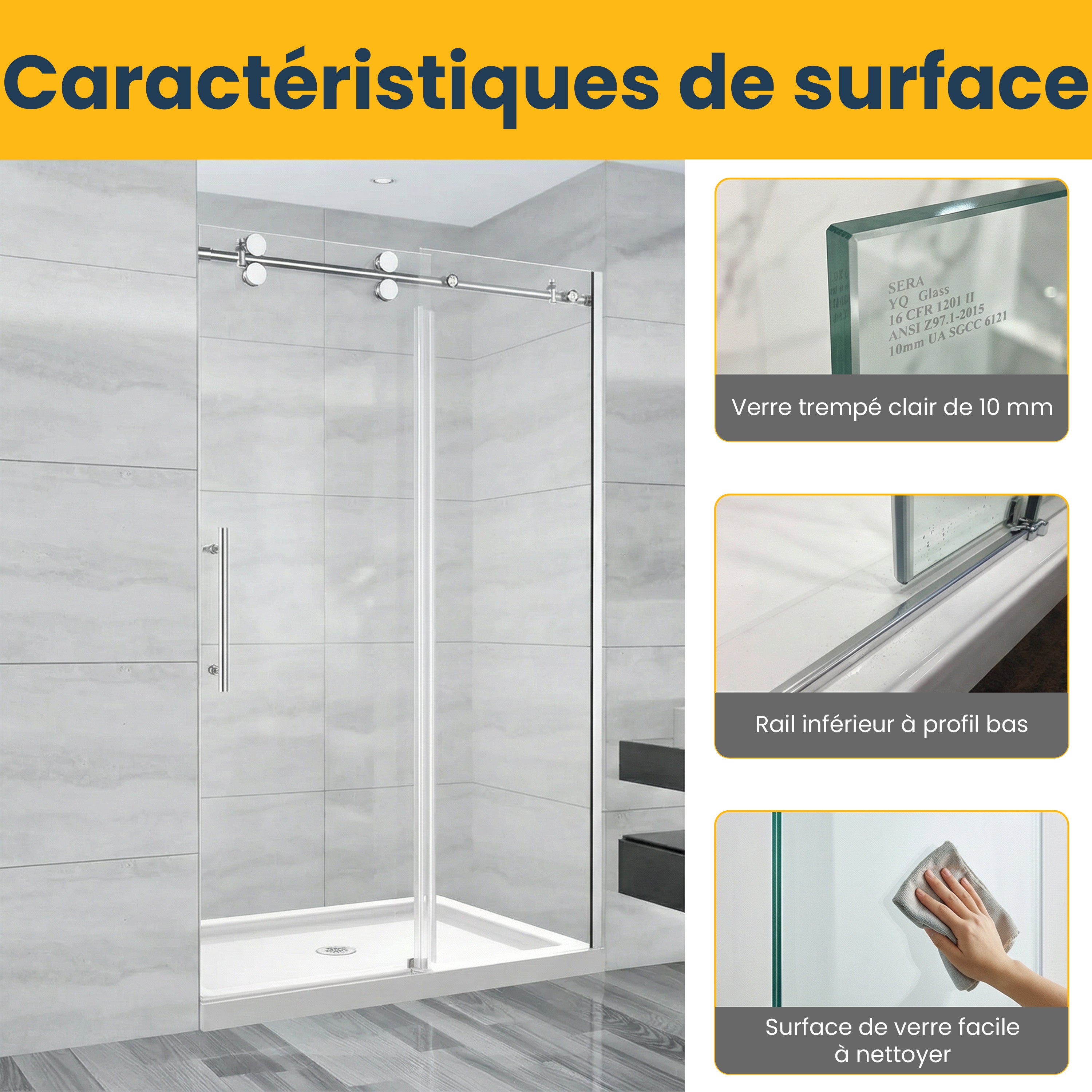 Verre : Fabriqué en verre trempé durable de 10 mm d'épaisseur pour plus de sécurité et de résistance.