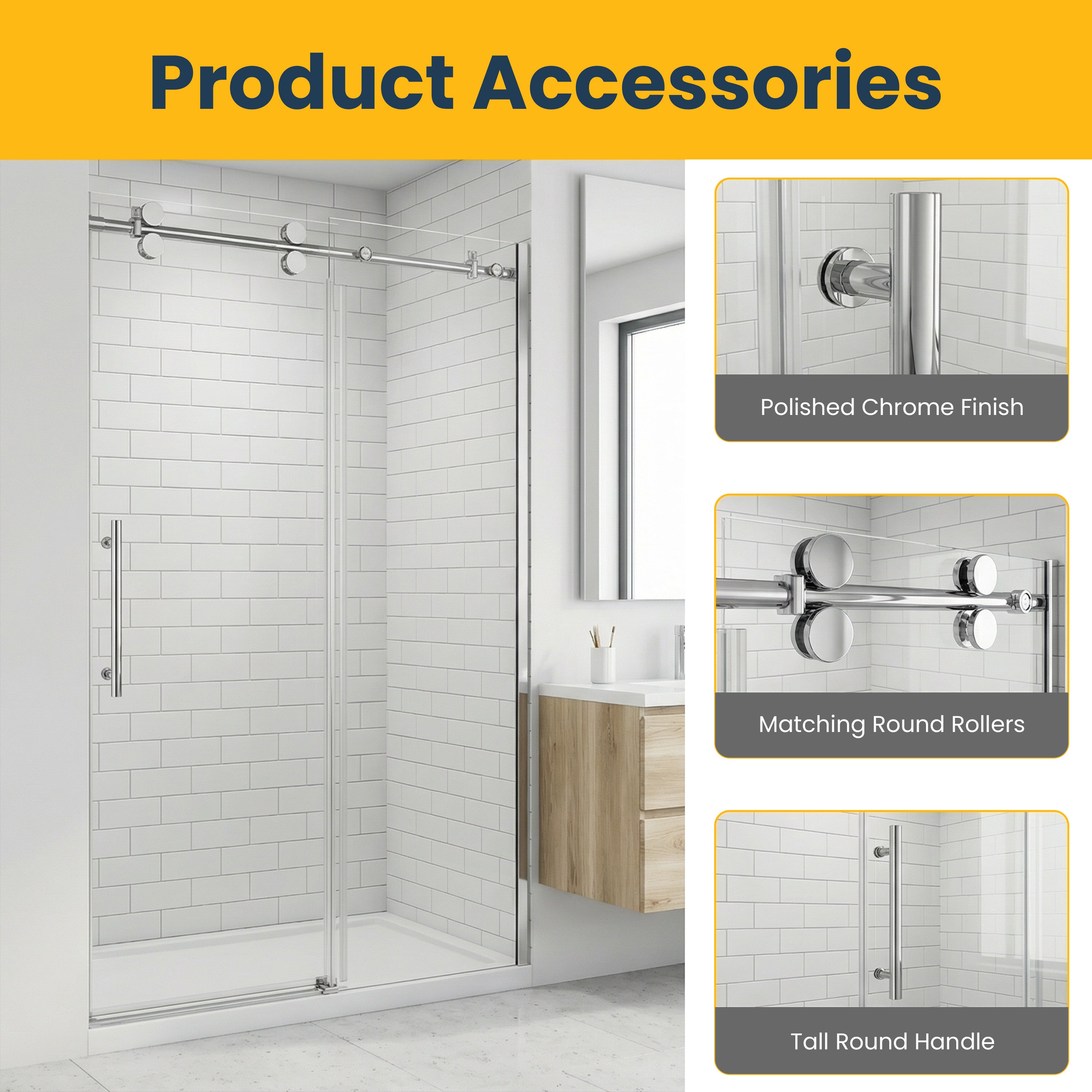 Avec sa quincaillerie chromée ronde et lisse et son verre trempé transparent, cette porte offre un design minimaliste, à la fois fonctionnel et élégant. Idéale pour les installations à trois murs, elle est conçue pour sublimer les petits espaces avec une touche moderne et aérée.