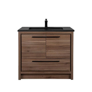 Meuble-lavabo de salle de bain autoportant en noyer de 36" avec Comptoir en quartz noir reconstitué