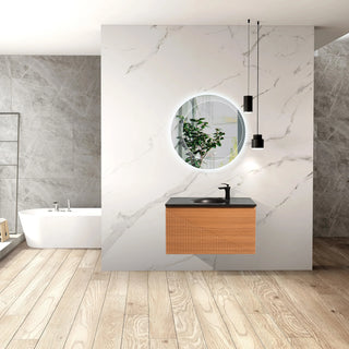 Meuble-Lavabo Mural 36po Chêne Clair avec Comptoir de Quartz d'ingénierie Noir