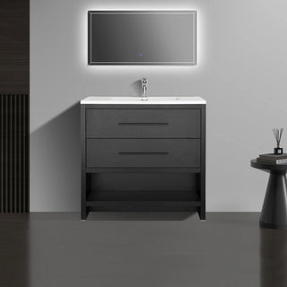 Meuble-Lavabo Autoportant 30po Chêne Noir avec Comptoir de Polymarbre Blanc