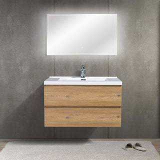 Meuble-lavabo Mural en Chêne Brut 36po avec Comptoir en Polymarbre Blanc