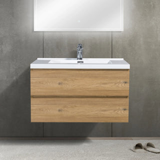 Découvrez l'art de l'élégance économe d'espace avec ce meuble-lavabo mural 36 po en chêne brut—un chef-d'œuvre épuré de la collection avant-gardiste Capri qui prouve que le luxe n'exige pas une grande superficie.