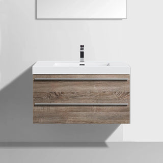 Meuble-lavabo Mural en Chêne Tendre de 36 po avec Comptoir en Polymarbre Blanc