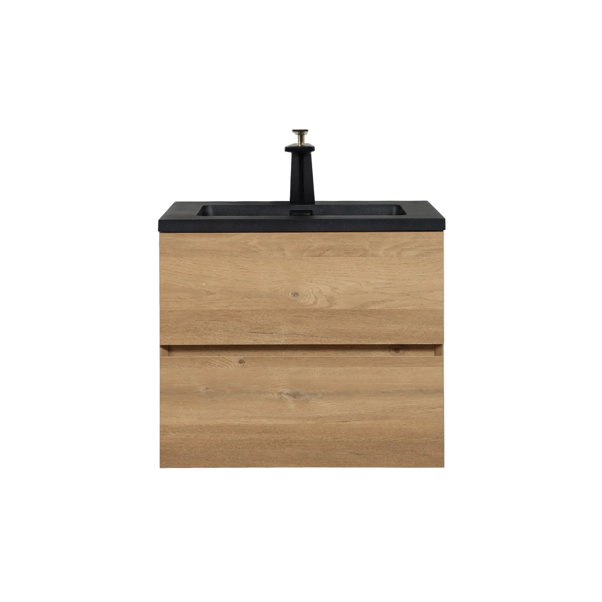 Meuble-Lavabo Mural 24po Chêne Brut avec Comptoir de Quartz d'ingénierie Noir