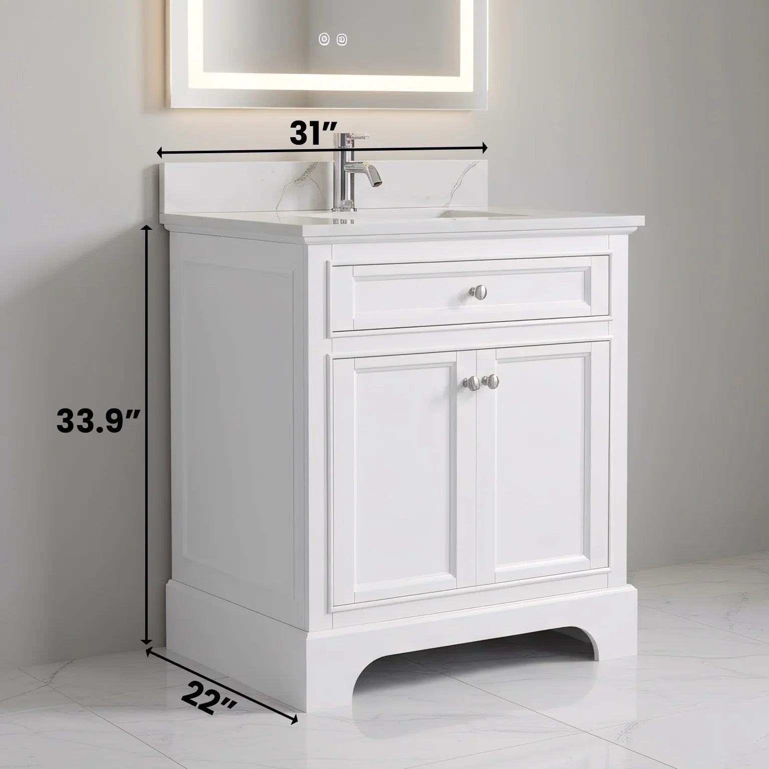 Meuble-lavabo de salle de bain autoportant blanc 30" avec Comptoir en marbre Calcutta reconstitué